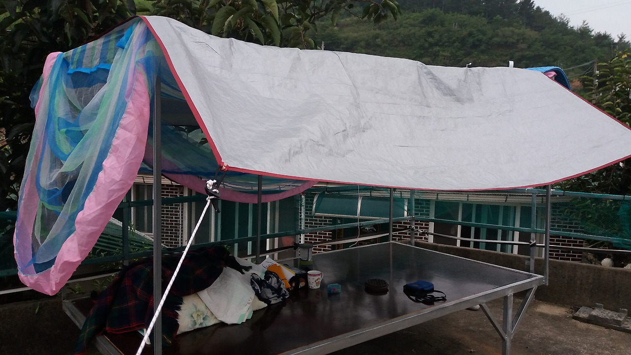 텐트로 친정 옥상에 집 한 채를 만들었고,