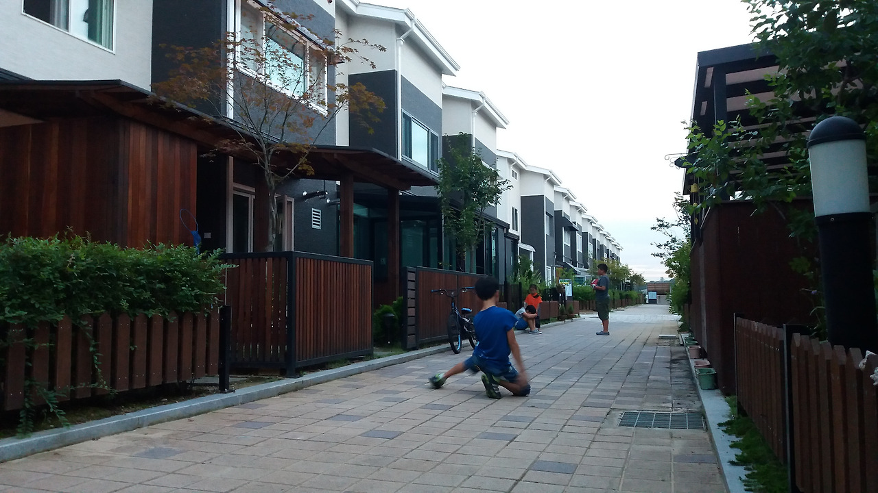 아이들이 놀고 있는 골목길에 든든한 배롱나무가