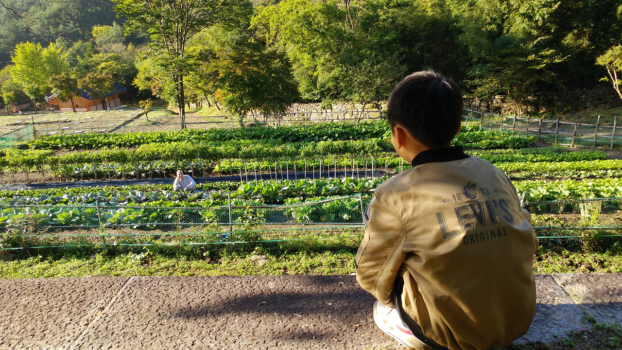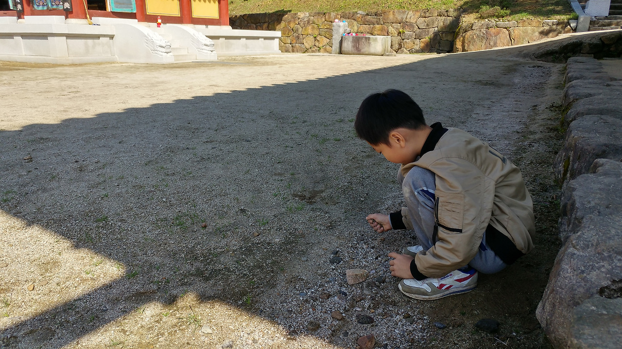 스님은 이대로 헤어지는 것이 아쉬웠는지 아들에게 산책을 권했다. 나는 ‘이런 기회 없어!’라는 심정으로 아들의 마음은 아랑곳없이 아들의 등을 떠밀며 같이 산책을 따라나섰다. 자동차 길로 1킬로 정도 오르며 스님과 이런저런 소소한 이야기들이 오갔다. 스님들도 의외로 속세의 사람들의 모습이 조금 궁금하신 모양이었다. 텃밭에서부터 들고 온 벌레들이 들어 있는 비닐봉지를 큰 바위 곁 풀숲에 풀어놓는 것을 잊지 않았다. 불교의 인연을 직접 눈으로 체험했던 순간이었다.