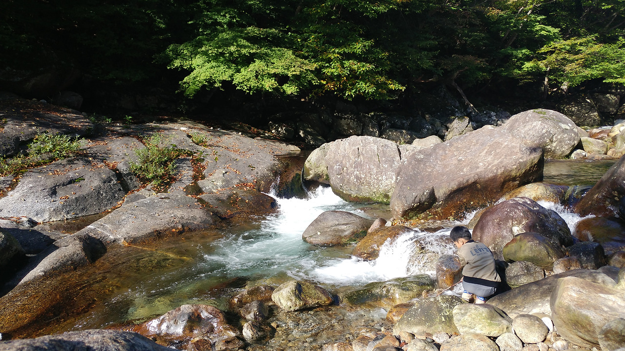 이렇게 스님에게는 피아골 계곡에서 가장 풍광이 좋다는 곳을 소개받았다. 두고두고 기쁨 마음으로 간직할 안온한 장소를 만들어 준 셈이다. 아침부터 아들을 위해 팥빙수를 사서 주겠다는 스님. 모든 아이들이 팥빙수를 좋아하는 것은 아닌데, 물어봤으면 했는데 말이다. 어린 아이를 위해 무언가 건네주고 싶었던 스님의 마음이 있었다. 너무도 즐거워하는 그 모습을 보며 감히 사양할 수 없었던 엄마의 맘. 아들도 좋아하지 않는 팥을 앞에다 두고, 팥빙수 안에 떡이 빠져 있는 빙수를 보고 대략 난감해하는 것 같았다.
