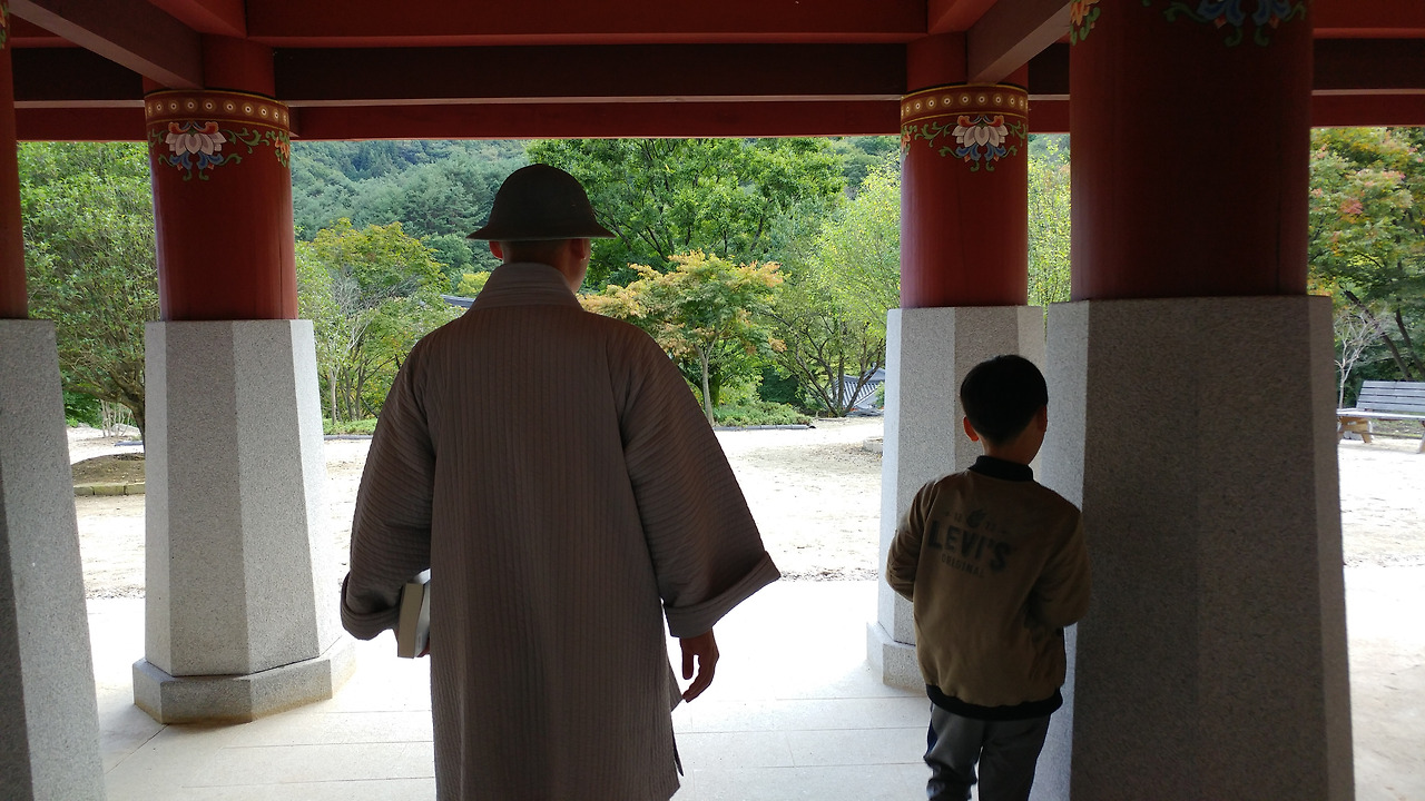 3시에 입사라는 시간을 잘 지켰다. 그런데 이게 웬일이랴. 가벼운 짐을 들고 누군가에게 템플스테이에 대해 물어봐야 하나 고민을 하려던 찰나, 원묵 주지스님이 앞에 걸어가고 있는 것이 아닌가. "기억하시겠어요? 지난달에 왔었던." 선글라스를 얼른 벗으며 인사를 드리니 리엑션 풍성하게 기억해 주었다. 초등학교 3학년 아들과 함께인지라 '체험형 템플스테이'가 아니라 '휴식형 템플스테이'를 선택했다. 후자는 당사자가 자유롭게 모든 일정을 스스로 하도록 맡긴다는 뜻이다.