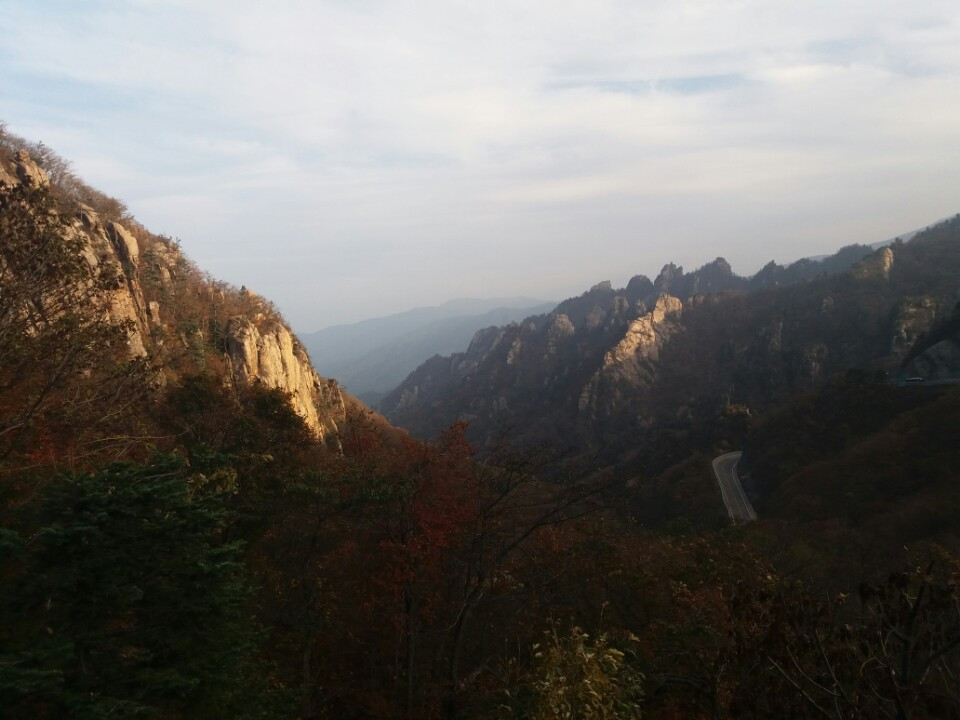 해가 이울어 가니 집으로 돌아가야 할 시간을 걱정하지 않을 수 없었다. 설악산 일정 중 마지막은 미시령터널을 통과해 서울로 바로 가지 않고 한계령 옛길로 들어가는 계획이었다. 미시령, 대관령, 진부령, 한계령을 구불구불 산새와 함께 하기로 했다. 그 마지막 정착지 여정은 한계령 휴게소였다. 고등학교 수학여행으로 다녀왔던 그곳은 벌써 20여 년이 훌쩍 지나버린 추억의 장소가 되었다. 한계령 휴게소로 올라가는 그 구불거리는 S자의 정상은 힘들었던 운전에 대한 보상을 해주었다. 앞서가는 네모난 버스의 뒤를 따르며 짐짓 불안해했던 운전자에게 주는 가을의 선물 같은 것이었다.
