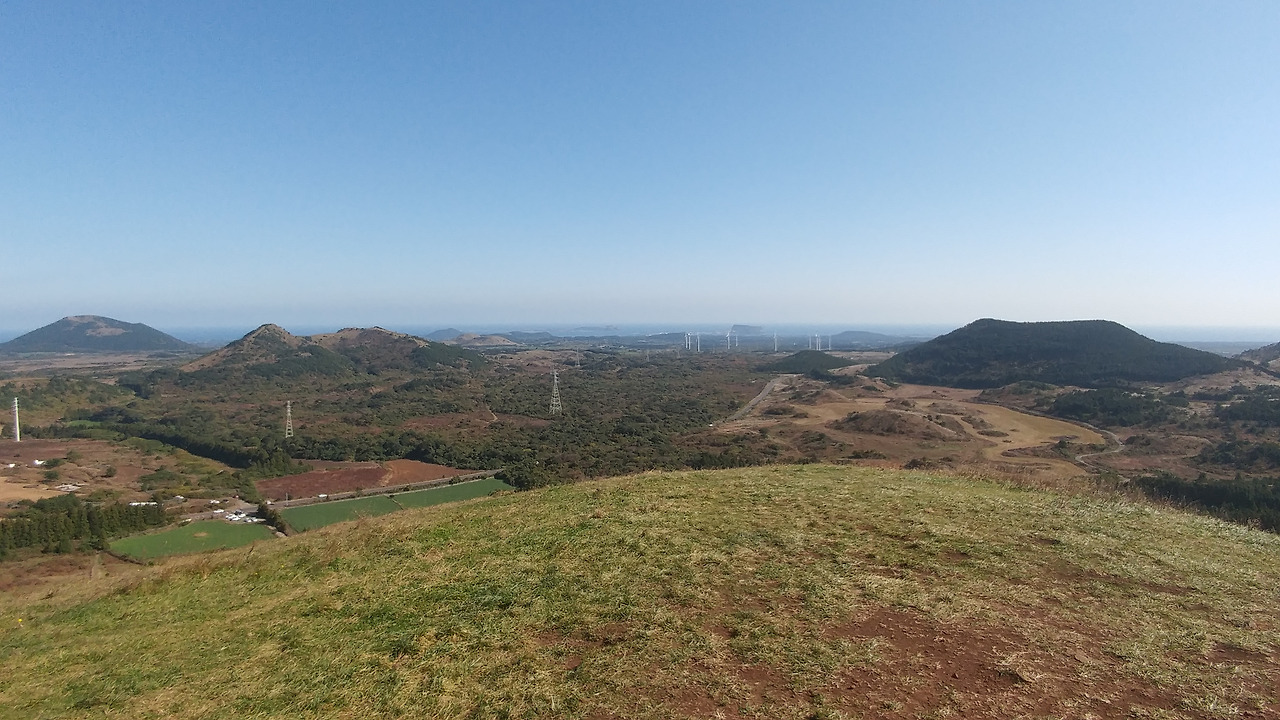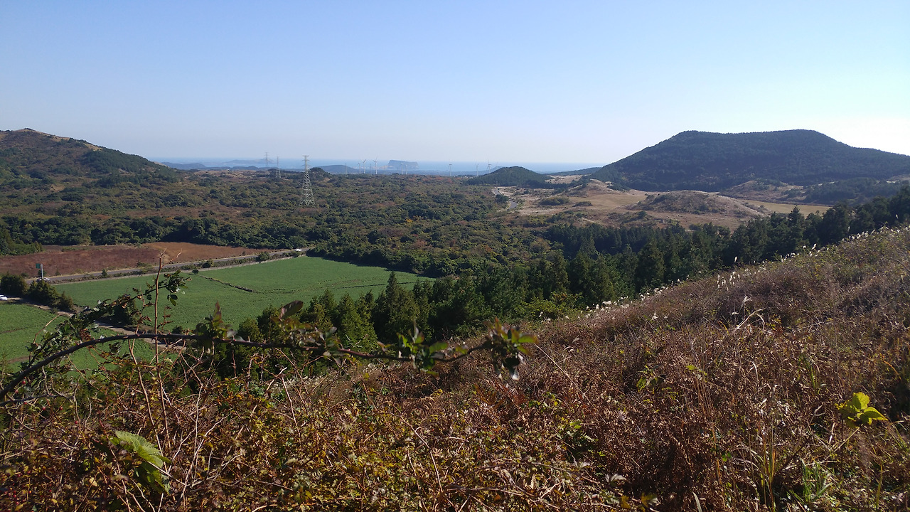 백약이 오름의 능선에서 바라본 제주도 동쪽 모습.