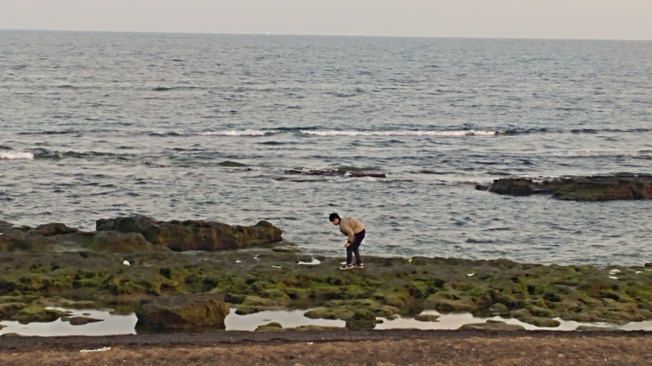고둥을 잡는다 아들은 진지한 탐색전을 펼쳤다.
