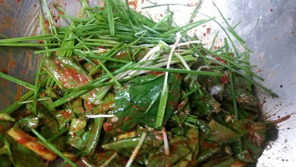 얼마 전에 친정에서 엄마가 담아둔 트레비소 김치를 맛보았다. 너무 쌉쌀해서 김치로 담아보는 것은 어떨까? 생각했다며 엄마표 전라도 맛의 창작품을 선보였던 것이다. 그 자리에서 밥 두 공기를 해치우고 집에 돌아와 나도 한번 담아 먹어 볼 것을 다짐했었다. 줄기 아래 이슬을 머금고, 어깨를 올려 활짝 몸을 펼친 앞마당 트레비소를 뜯어 가볍게 버물려 보니 밥을 부르는 향내가 예사롭지 않았다.