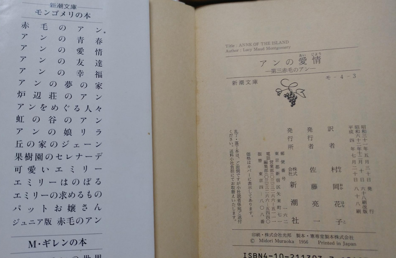 일본어판, '빨간 머리 앤'이다. 일본에서는 이미 오래전부터 책 번역본 뿐만 아니라 애니매이션으로 제작되어 일본인들에게 더욱 각별하고 귀엽고 사랑스런 앤이기도 하겠다. 루시 모드 몽고메리 여사의 책이 시리즈로 등장하고 있기에 이 몇 권의 앤 시리즈 책이 내 손안에 있다는 것만으로도 귀한 보물이 아닌가 싶다. 심지어 1956년, 1957년 출판 책이다.