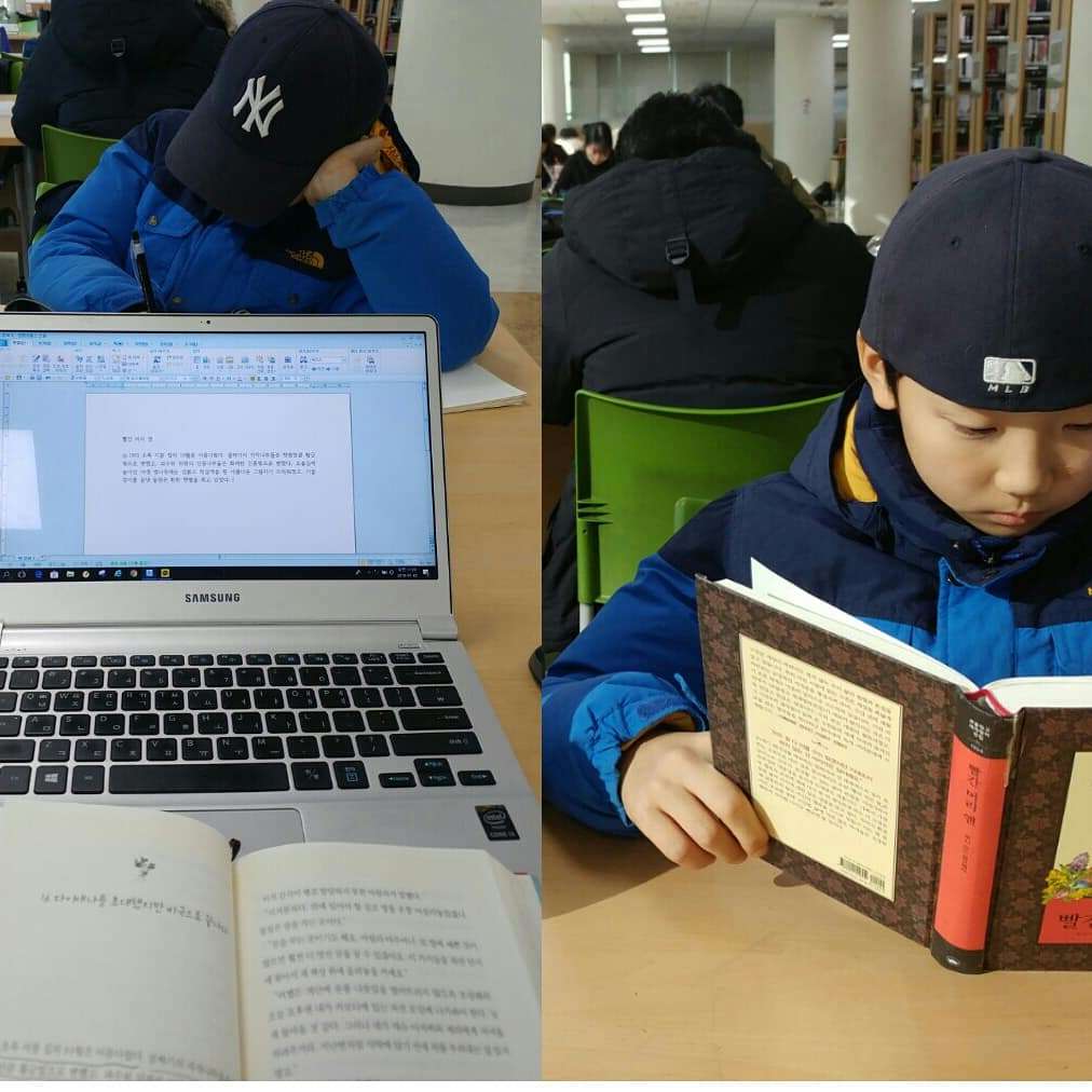 아들의 겨울방학은 이미 반 이상이 지나갔다. 아쉬워하는 아들의 얼굴빛을 읽어내지만 필자는 입가에 미소를 조금 드러내고야 만다. 방학이 시작되자마자 도서관 출입을 습관화했다. 물론 추운 날씨가 들었던 한파의 며칠은 집에서 차분하게 학습 분위기를 이어주어야 했다. 도서관보다 더 도서관 같은 우리 집이 사실 어쩔 땐 나가기 싫은 이유 중에 하나이기도 하다. 그렇지만 집중하는 사람들을 보게 해 주는 것은 학습 효과가 아주 크기에 도서관 방문을 거부할 이유가 없다.