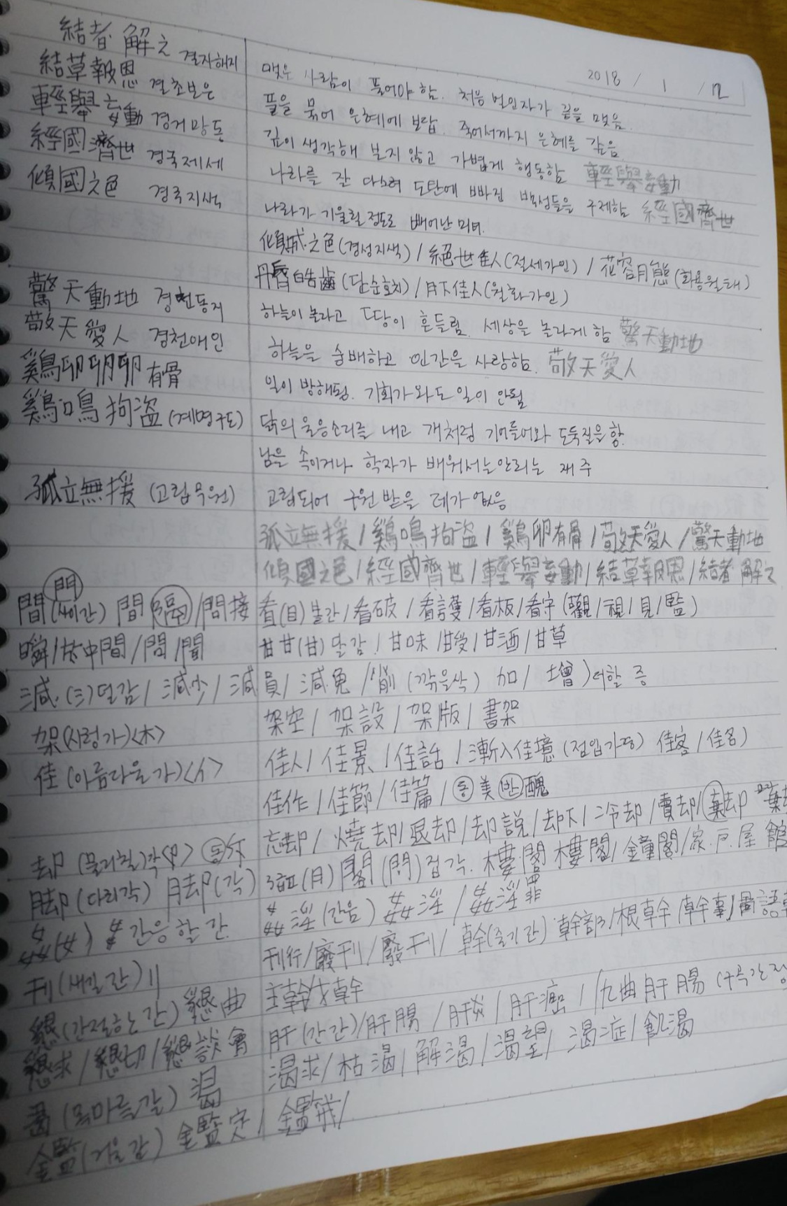 한자는 역시 그림 글자임이 확실하다. 가물거리는 나를 위해 '어문회 한자 3급 자격증'을 핑계로 도전에 나섰으나 꾸준히 잘 하기가 참 힘들다. 단기 알바를 위해 잠시 집을 떠난 조카가 잠시 들러 사진 한 장을 남겨준다. '분위기가 장난 아닌데'라며. 한자를 놓지 않기 위해 노력하지만 요즘(2018년 8월) 날마다 한자를 보지 못하고 있다. 격일이나 3일에 한 번 정도 보고 있는 것이 요즘의 모습이라 그래도 열심히 하자며!