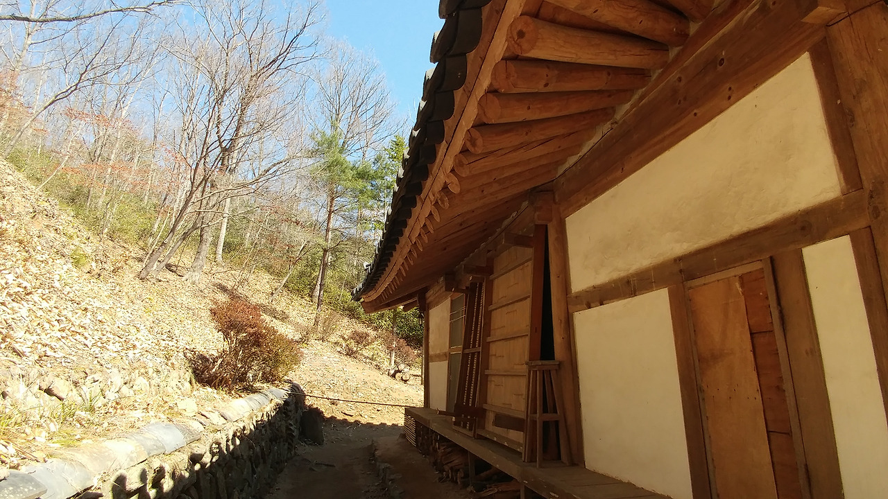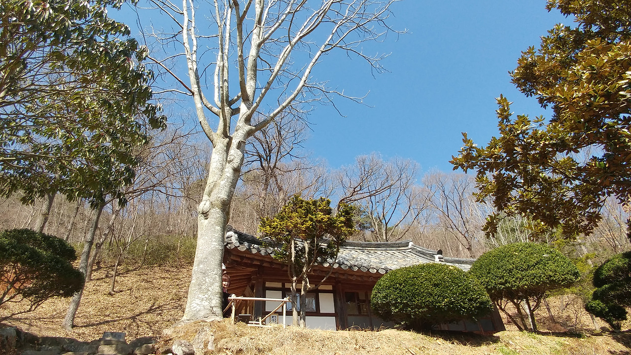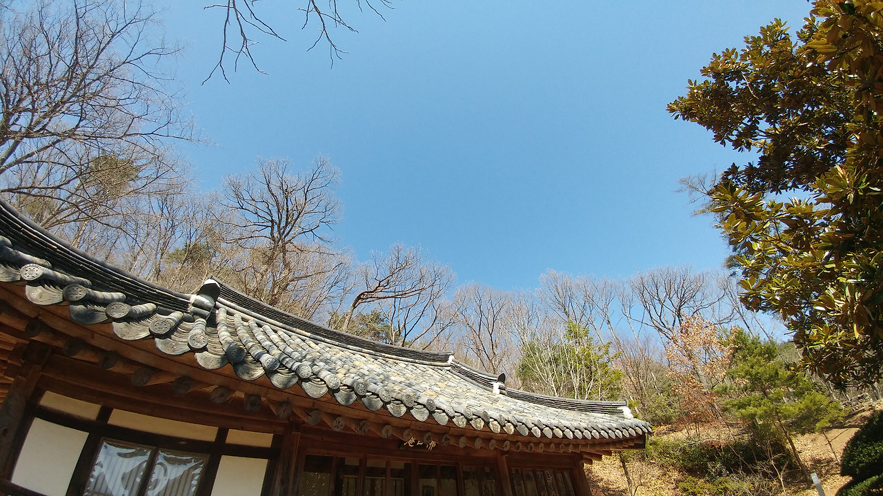 작은 암자 속 맑은 공기 기쁨이 가득 찼다