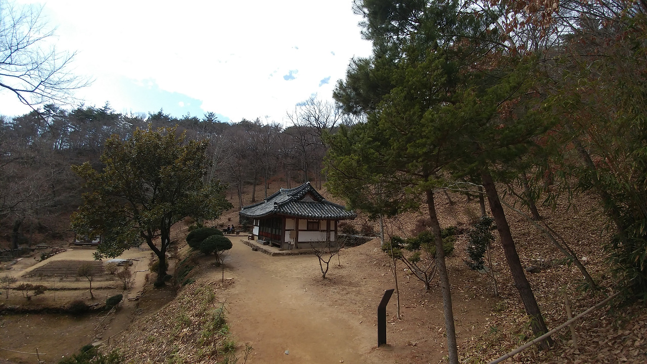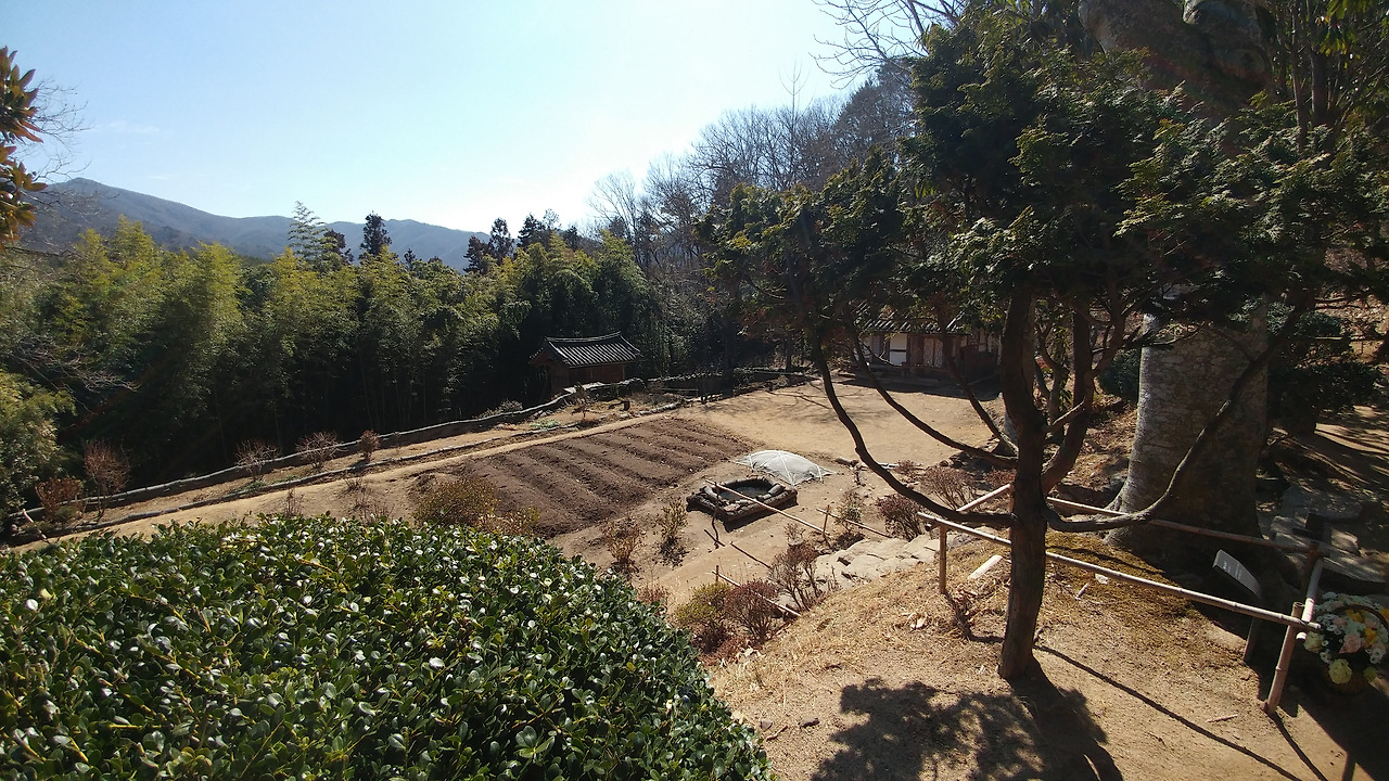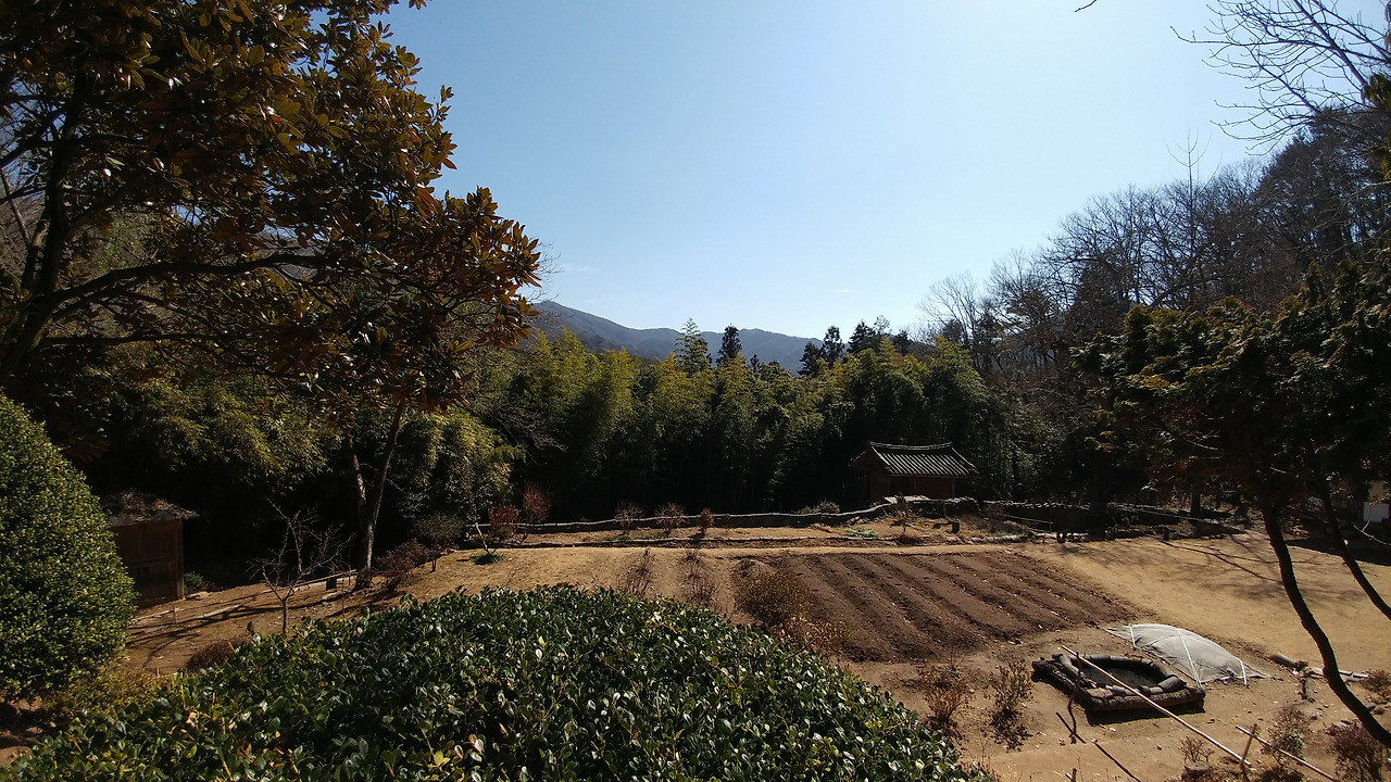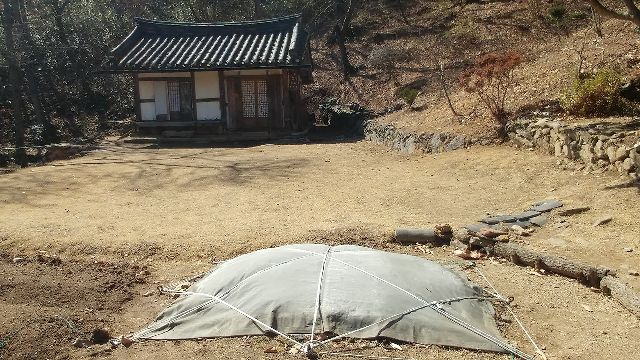 작은 암자 속 맑은 공기 기쁨이 가득 찼다