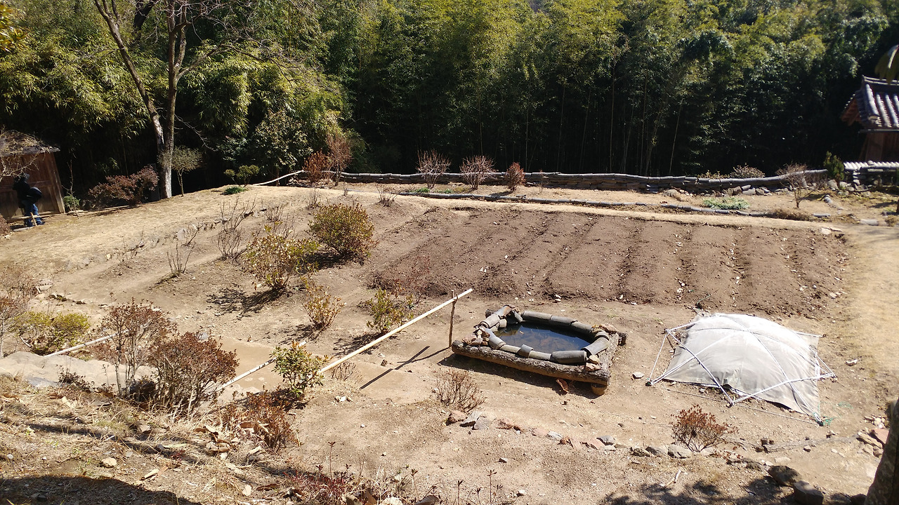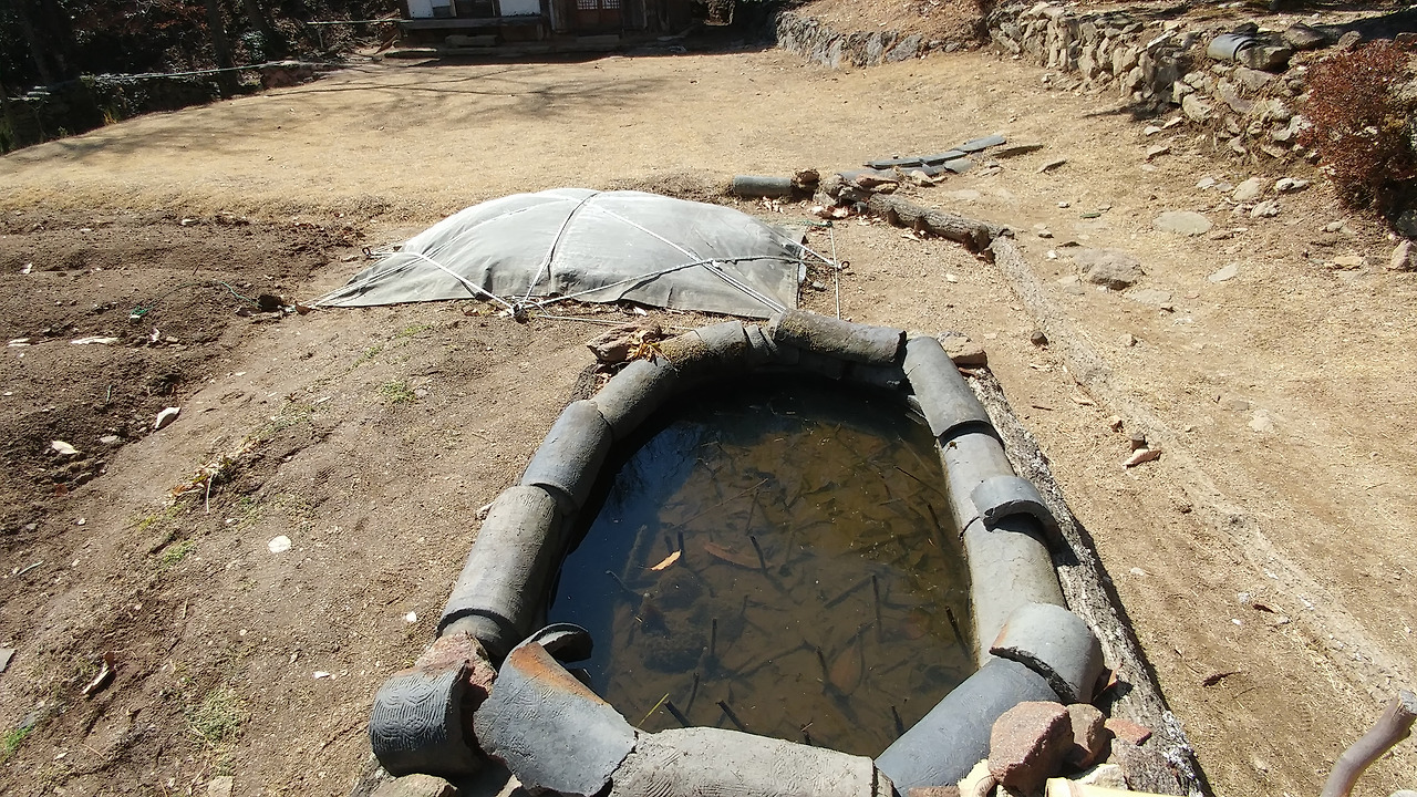 연꽃 뿌리가 자리 잡은 연못이 되는 텃밭