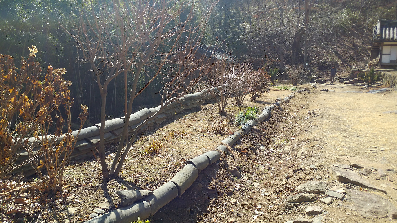 비에 씻겨갈 불일암 흙더미 언덕을 지키는