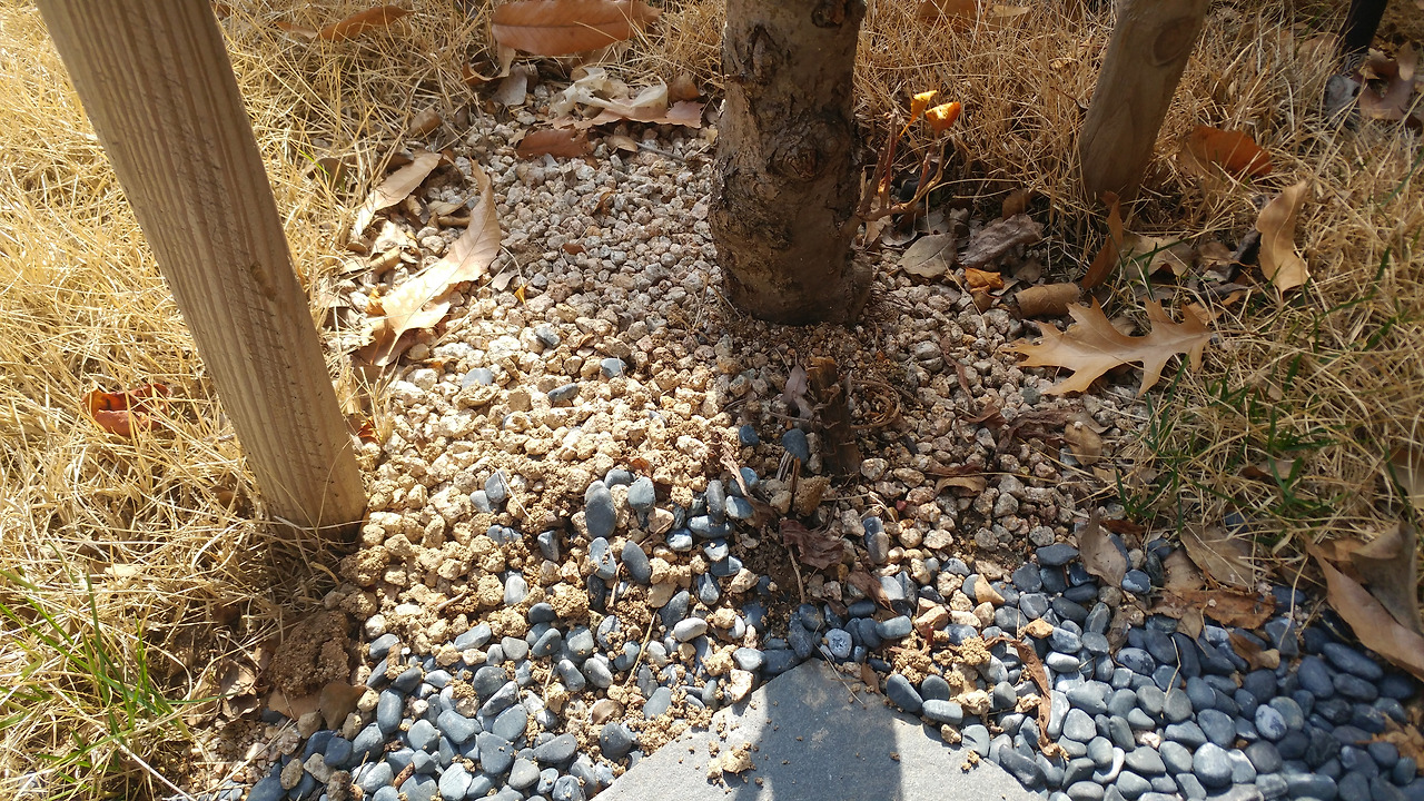 애기사과나무 밑에 묻어주었다.