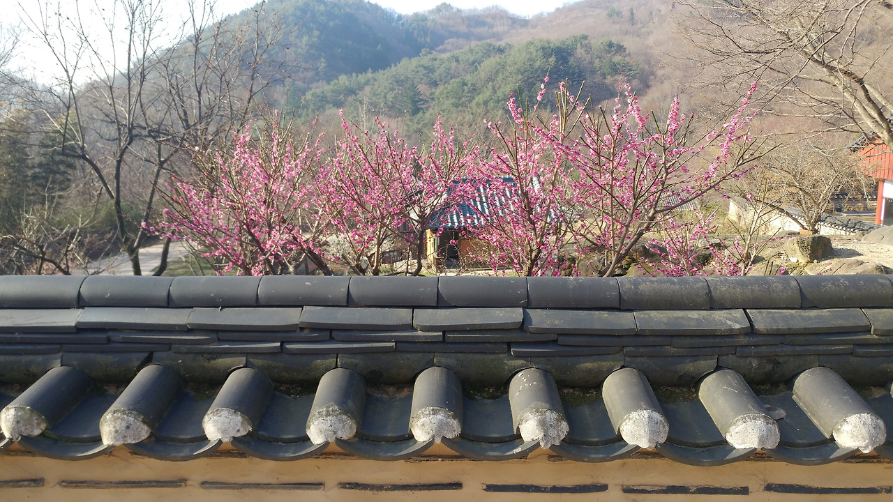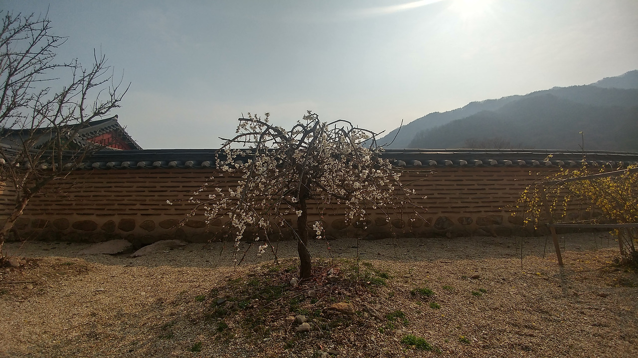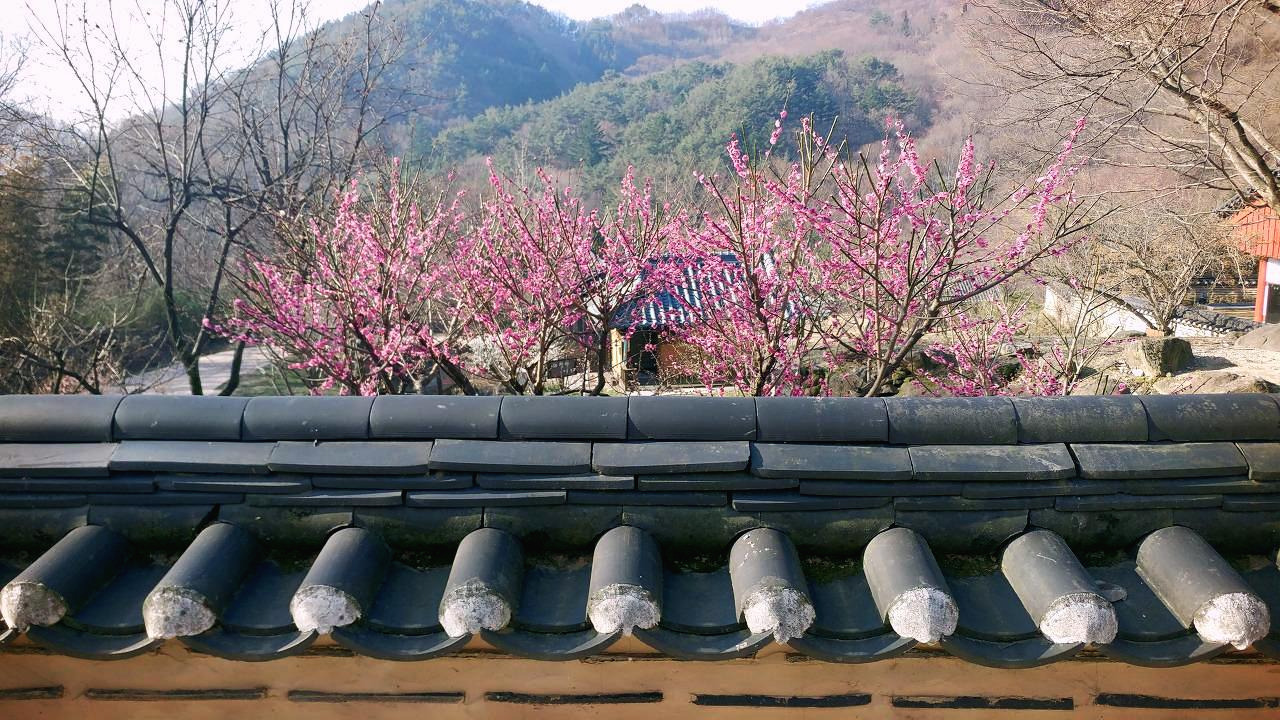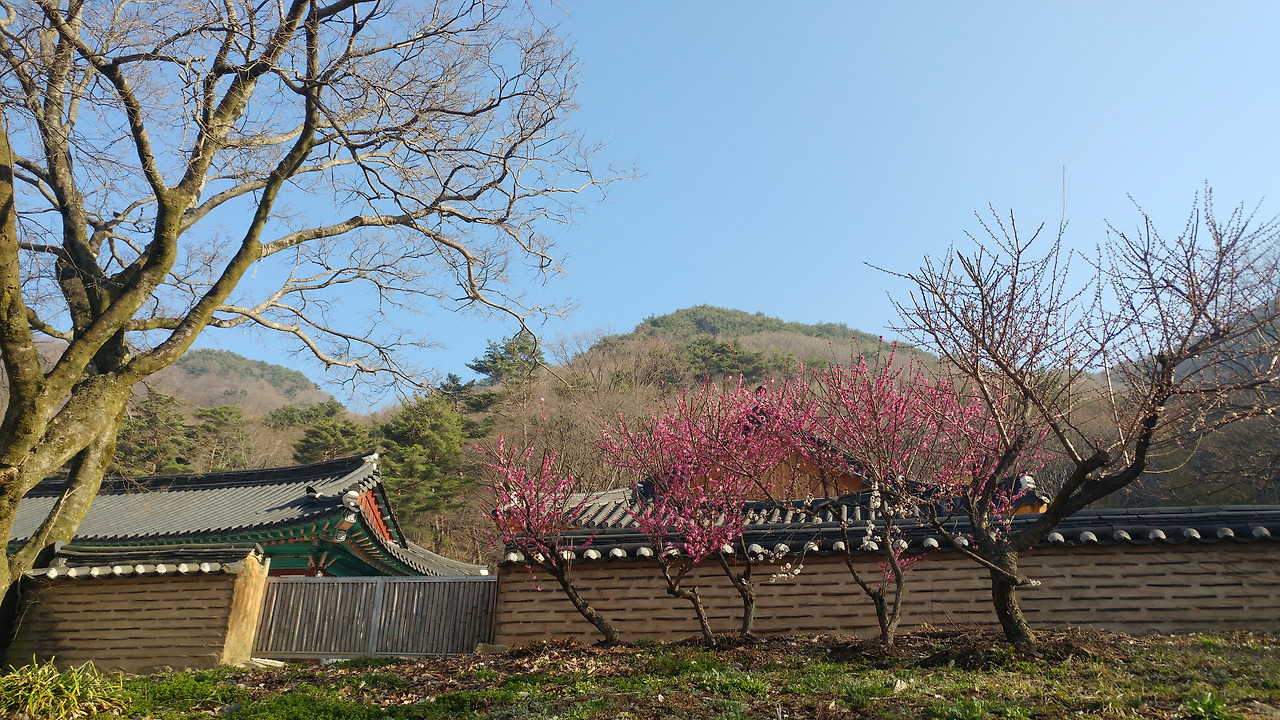널따란 절마당을 두른 담장과 묘한 어울림으로 홍매화는 계속 자리를 지키겠지요. 듬직한 산야에 자리를 깔고 또 여러 계절을 맞이할 준비를 말이죠.