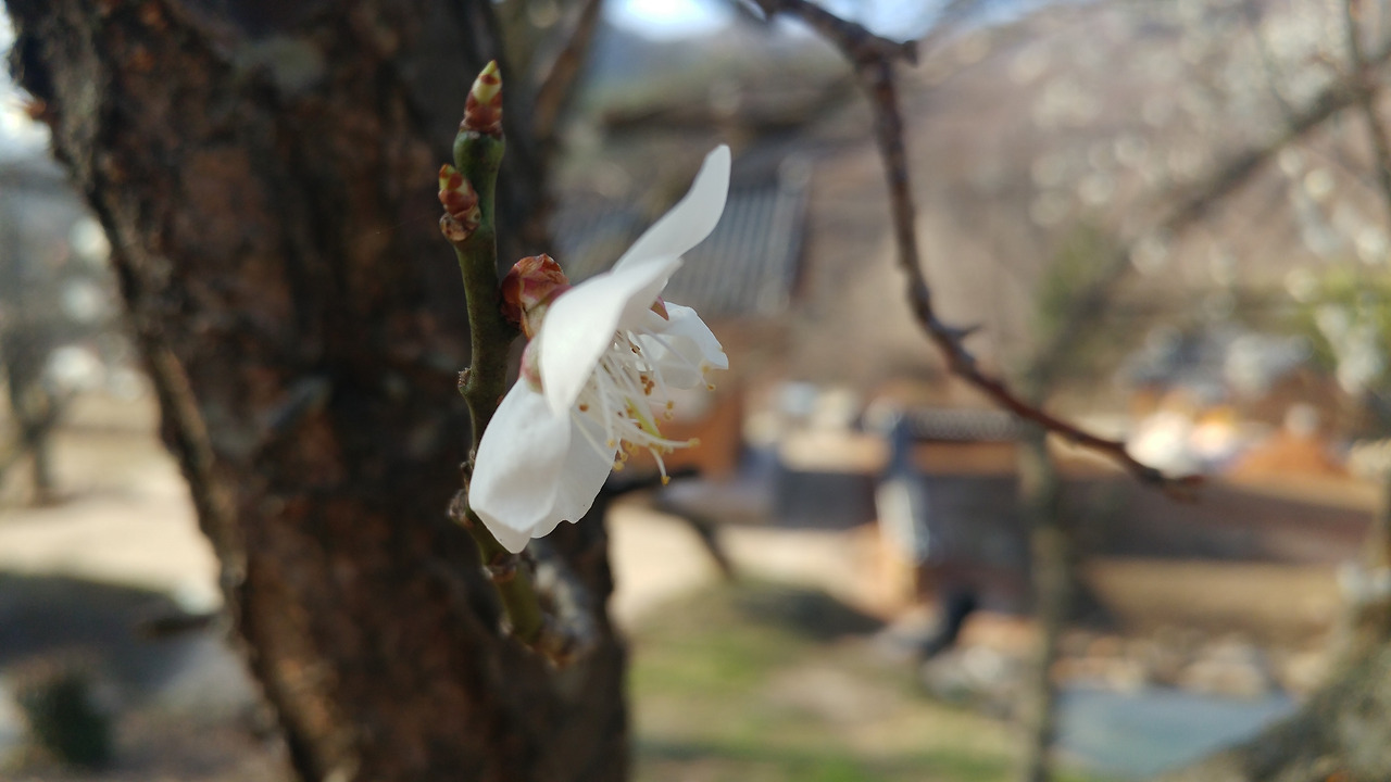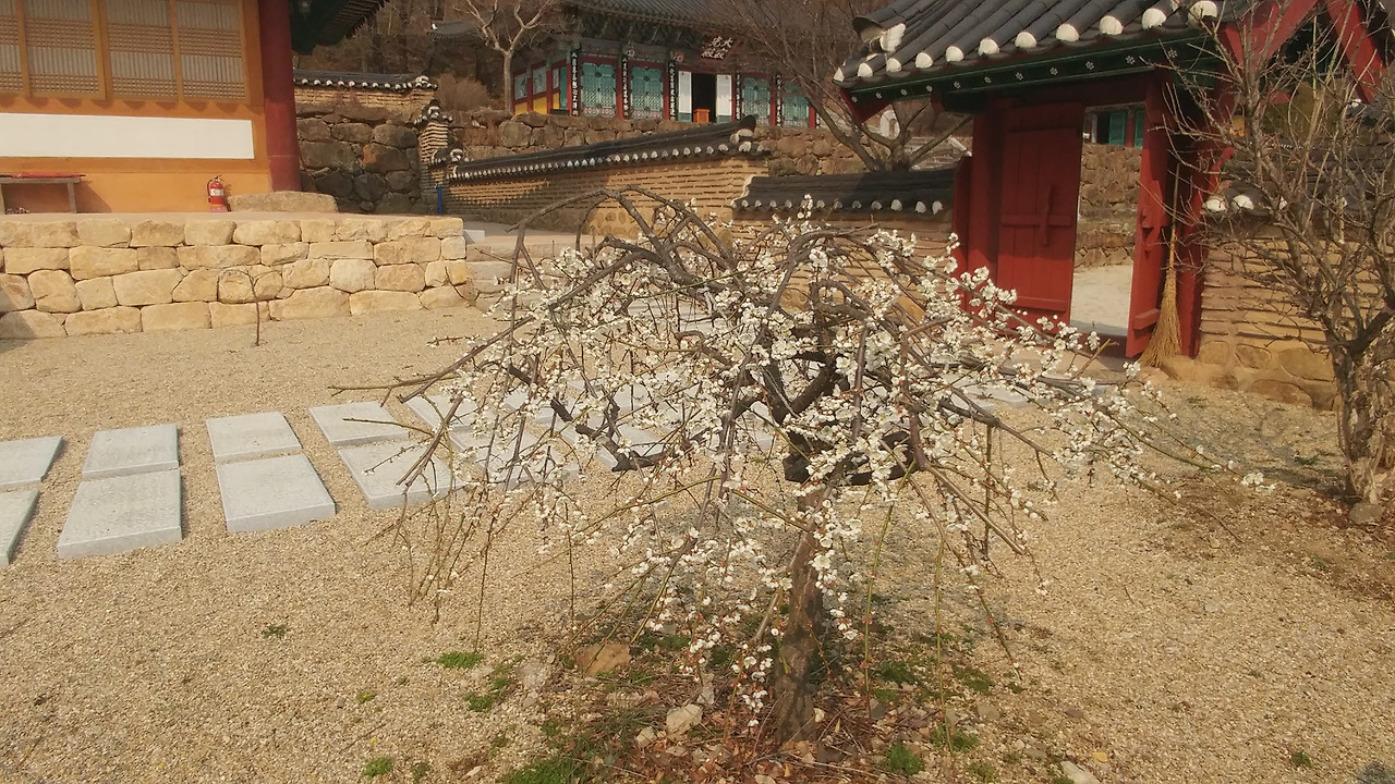 지금까지는 여름과 가을 사이에 산사를 찾았던 지라 매화나무를 유심히 살펴볼 수가 없었습니다. 관심이 다른 곳에 있었던 게 분명합니다. 나무가 그저 나무였음으로 보였던 게지요. 그 나무가 그 나무가 아니었던 의미를 되새기며. 이른 봄 이곳을 찾게 된 것이 크나큰 영광이라면 영광입니다. 북적이는 매화 밭을 거닐지 않아도 이렇게 매화를 더욱 유심히 자세히 볼 수 있음에 감사합니다. 널려 있는 수많은 꽃송이의 그것이 아니니 더욱 집중할 수 있었다고나 할까요.