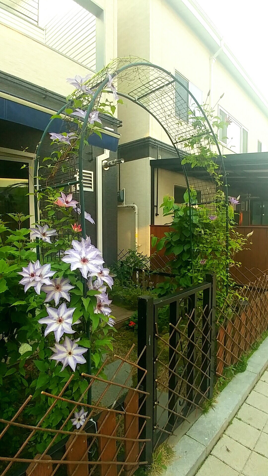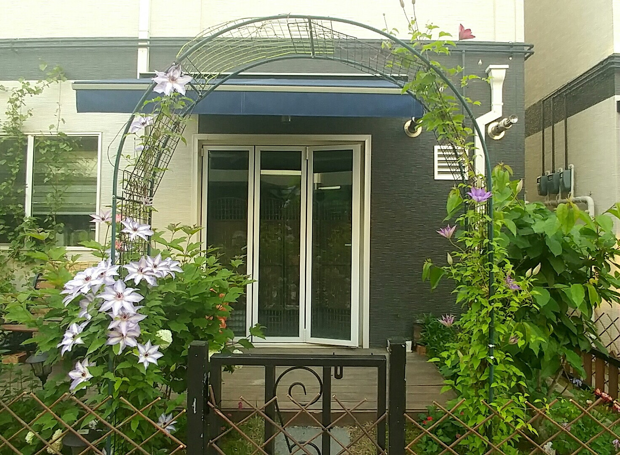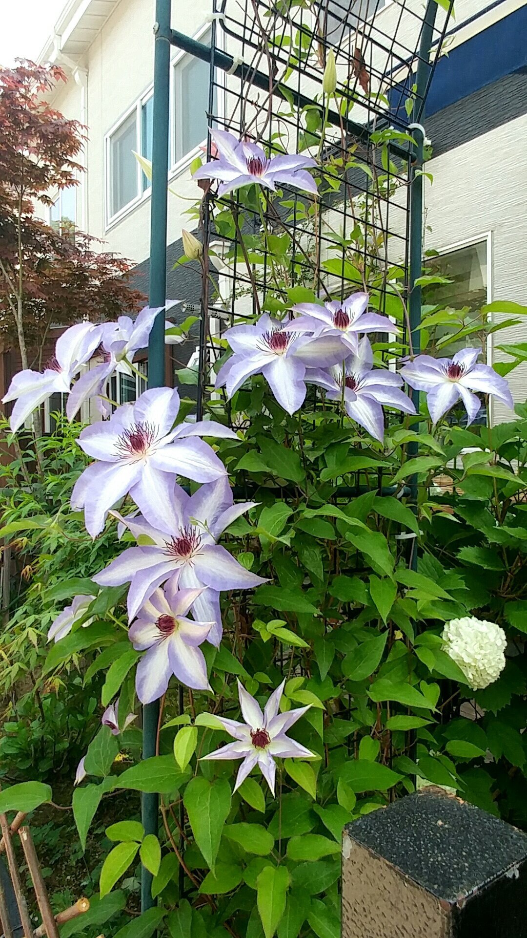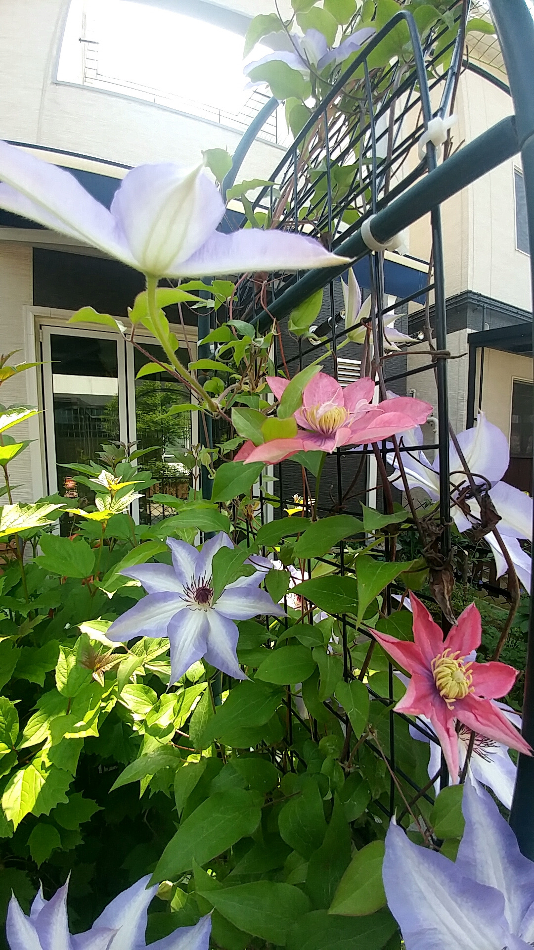 클레마티스_니오베(제일 오른쪽 꼭대기에서 피고 있다.)