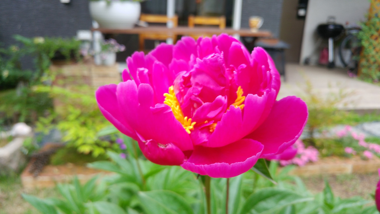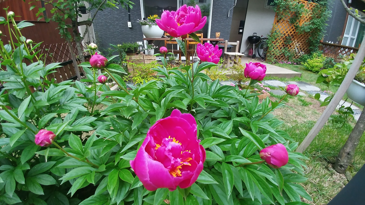 나미래의 마당 이야기_함박꽃의 향을 맡아보셨나요? | 마당과 작약은 두 번의 봄을 맞이했다. 올봄, 한 번 더 뜰 앞으로 옮겨온 작약은 힘겹게 한 송이의 큰 꽃을 피어낼 수 있었다. 은은하고 부드러운 꽃향과 함께. 지난해 이른 봄, 자동차로 4시간 이상이 걸리는 친정을 다녀왔을 때의 일이다. 아버지는 시골 마당에서 이미 싹이 오르고 있는 작약 뿌리를 캐내 자신의 집으로 향하는