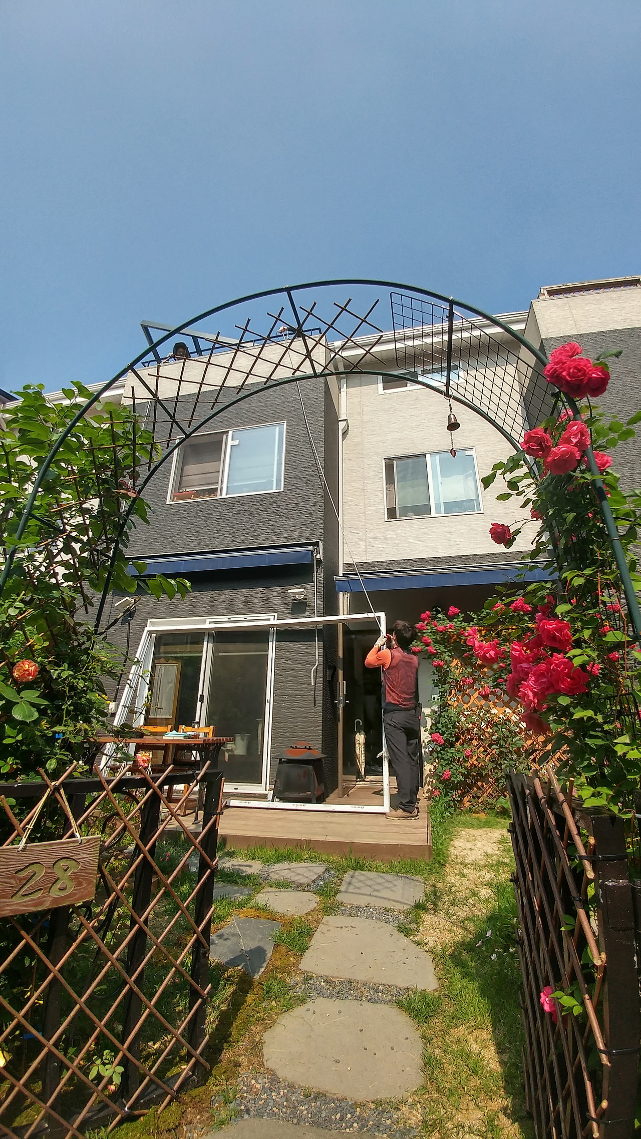 중정에 조립 화분대를 옮겨두었다.