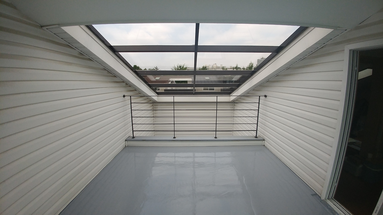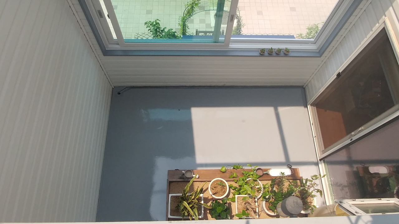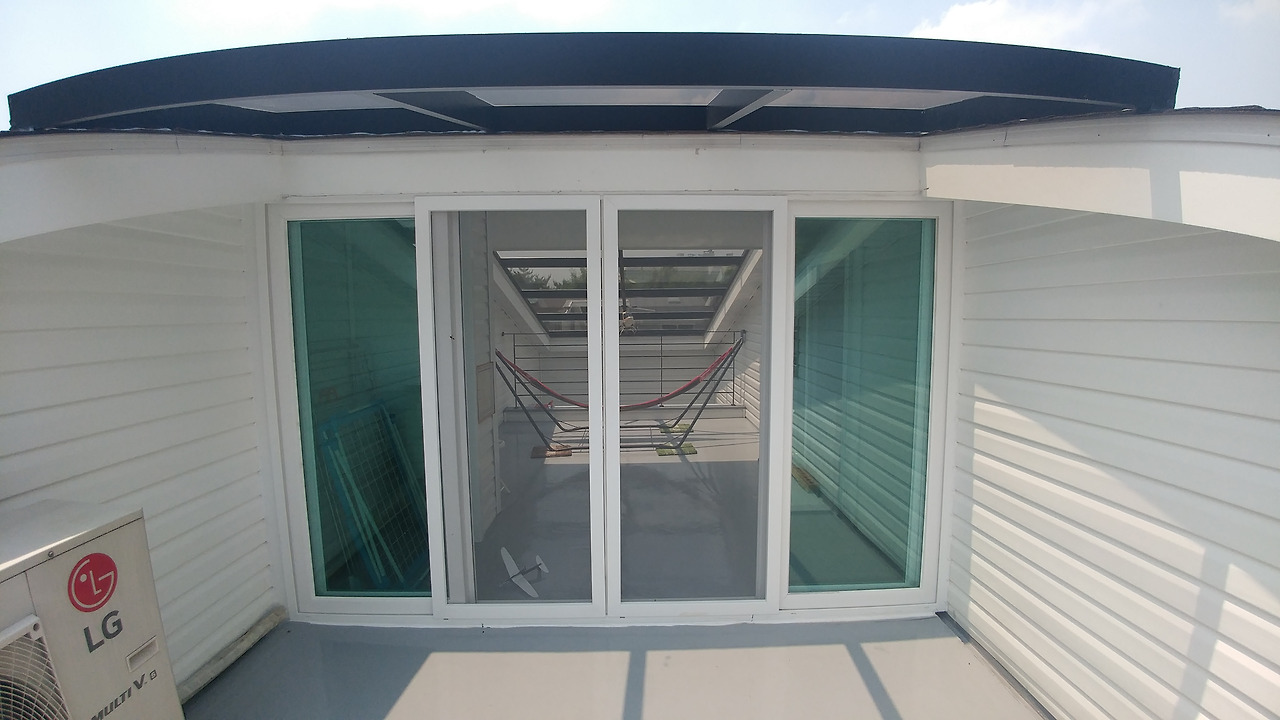 이렇게 창문 앞에 조금만 유리 지붕을 올렸다.