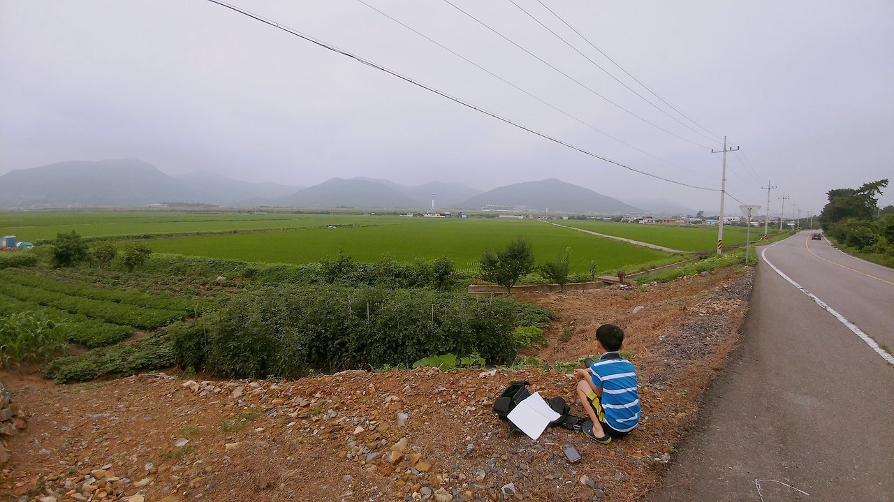 [여수공항]으로 향하는 둘째 날 아침의 시작은 친정이었다. 광주공항 주변 들판에서 많은 시간을 보낸 아들과 다음 일정을 위한 중간 장소로 친정을 소환하기에 이르렀다. 여수에서는 몇 시간에 한 대씩 오는 비행기를 레이더와 비교하며 여유롭게 보고 싶다 했다. 공항 주변에 위치한 ‘율촌면’의 농로는 비행기 소리와 함께 여름날 작물의 성장 소리도 듣게 해주었다. 여름 철새 백로도 논이랑에 발을 담그고 벼이삭이 패기까지의 그날을 보호해주고 있는 듯했다.