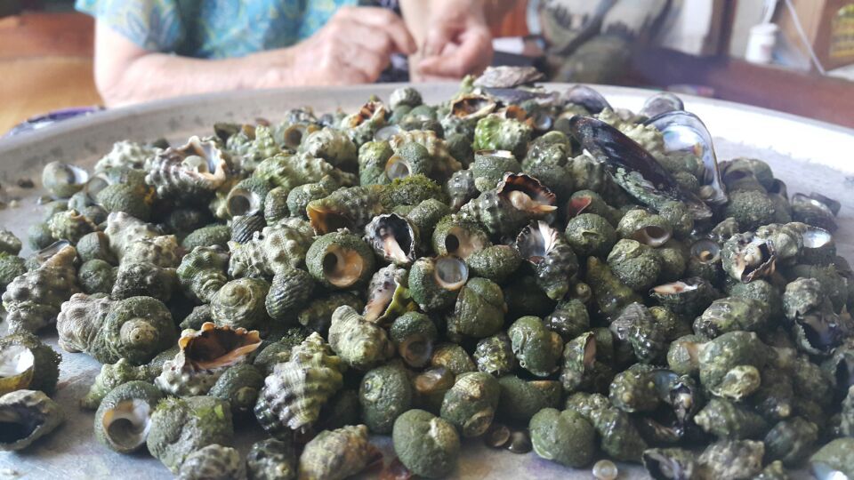 친정 엄마와 3대가 모여 고둥을 까고, 먹으며
