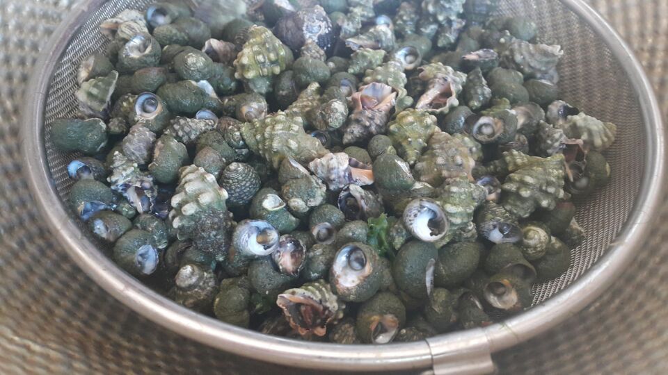 깐 고둥을 장과 고추가루, 참기름에 무쳐 먹으면