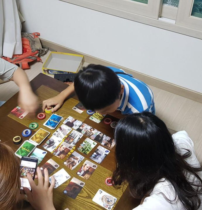 보드게임 스플랜더를 하고 있는 모습이다.
