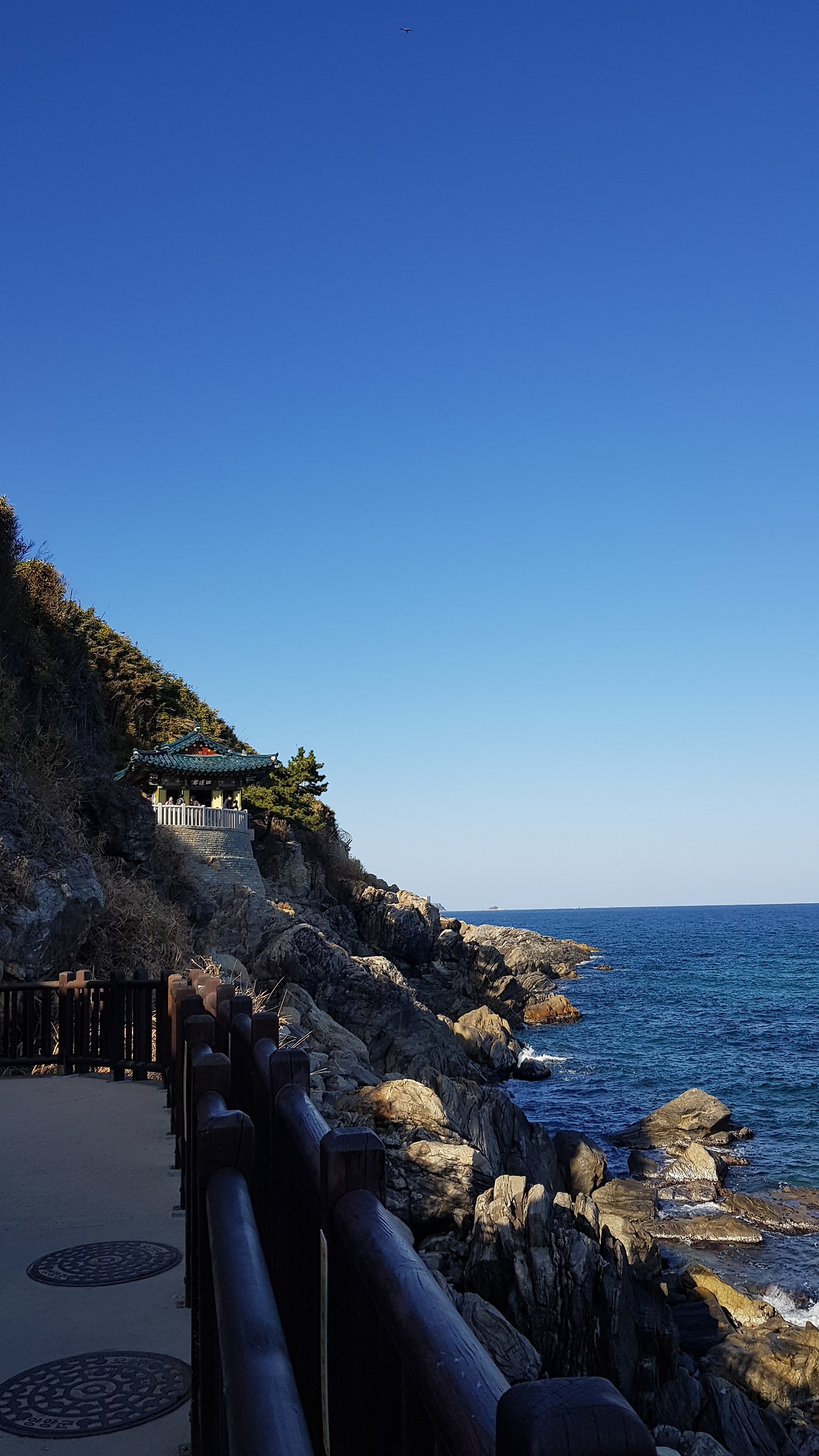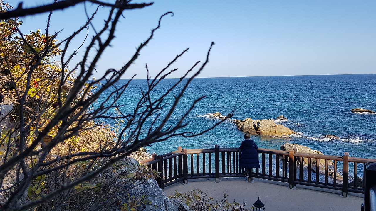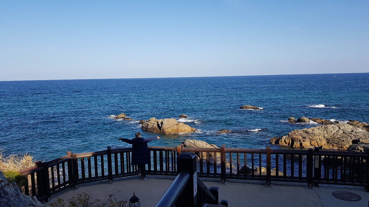 동해안의 잔잔한 바다도 흔치 않은 구경거리였다. 해안 절벽의 홍련암 가는 길과 의상대는 언제 봐도 빼어난 풍광에 넋을 잃곤 한다. 그런데다 쉽게 접근한 역사가 함께하다니. 하나 더, 나는 그곳에서 무엇보다 남편의 여유를 보아서 좋았다. 다른 가족들이 함께 하니 남편도 안온하게 여행의 주체와 참관자가 되어 주는 것 같았다. 급한 여행이 되어서는 안 된다는 지금까지의 나의 여행 시선을 맞춰주려 노력하는 것이었을까? 아니면 짐짓 다른 가족을 위해 자신의 내면의 정체성을 숨기고 있었던 것이었을 수도 있다. 그렇지만, 여러 방법과 과정을 통해 가족과의 소통을 알아가는 것이니까. 알았을 테니까.
