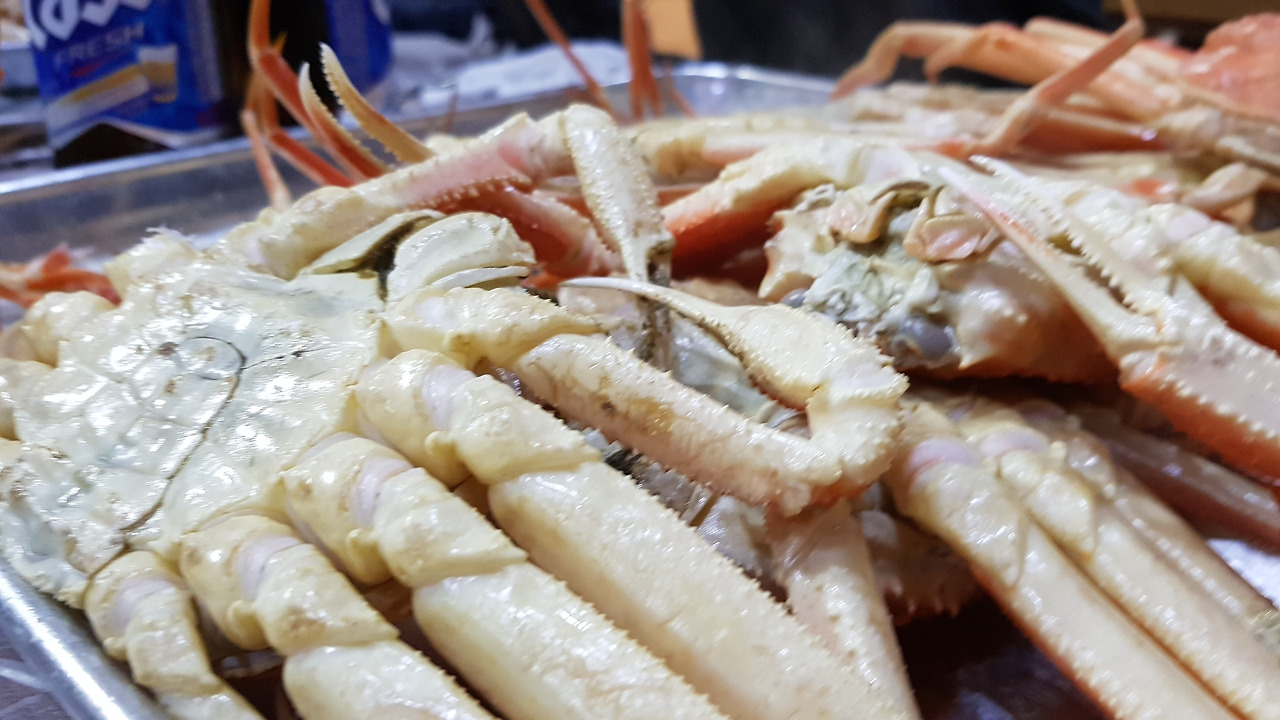 현지에 가서 더 자세히 알게 되었지만 그곳에서 대게를 즐기는 방법은 크게 두 가지 정도였다. 대게 전문 가게에 들어가 한상 정식 차림으로 인당 계산하여 먹는 방법. 그리고 주변의 수산물 가게나 좌판에서 대게를 구입해 자릿세만 내고 먹는 방법이다. 후자의 경우 전자에 비해 경비 절감 면에서 매력이 있는 방법이다. 단, 대게만 먹다 부족할 수 있고 탕 아니면 대게 밥 정도다 보니 차림이 화려하진 않다.