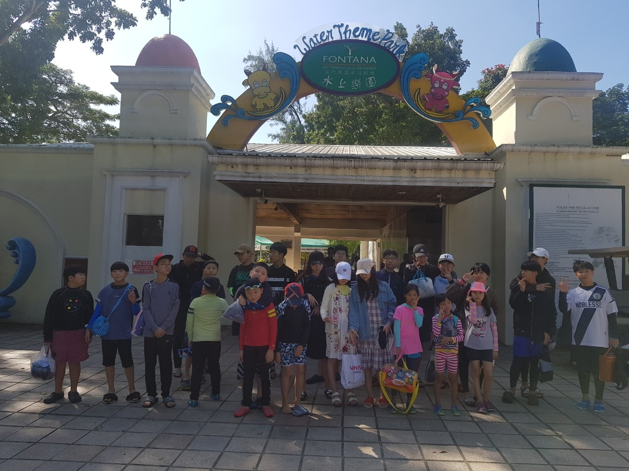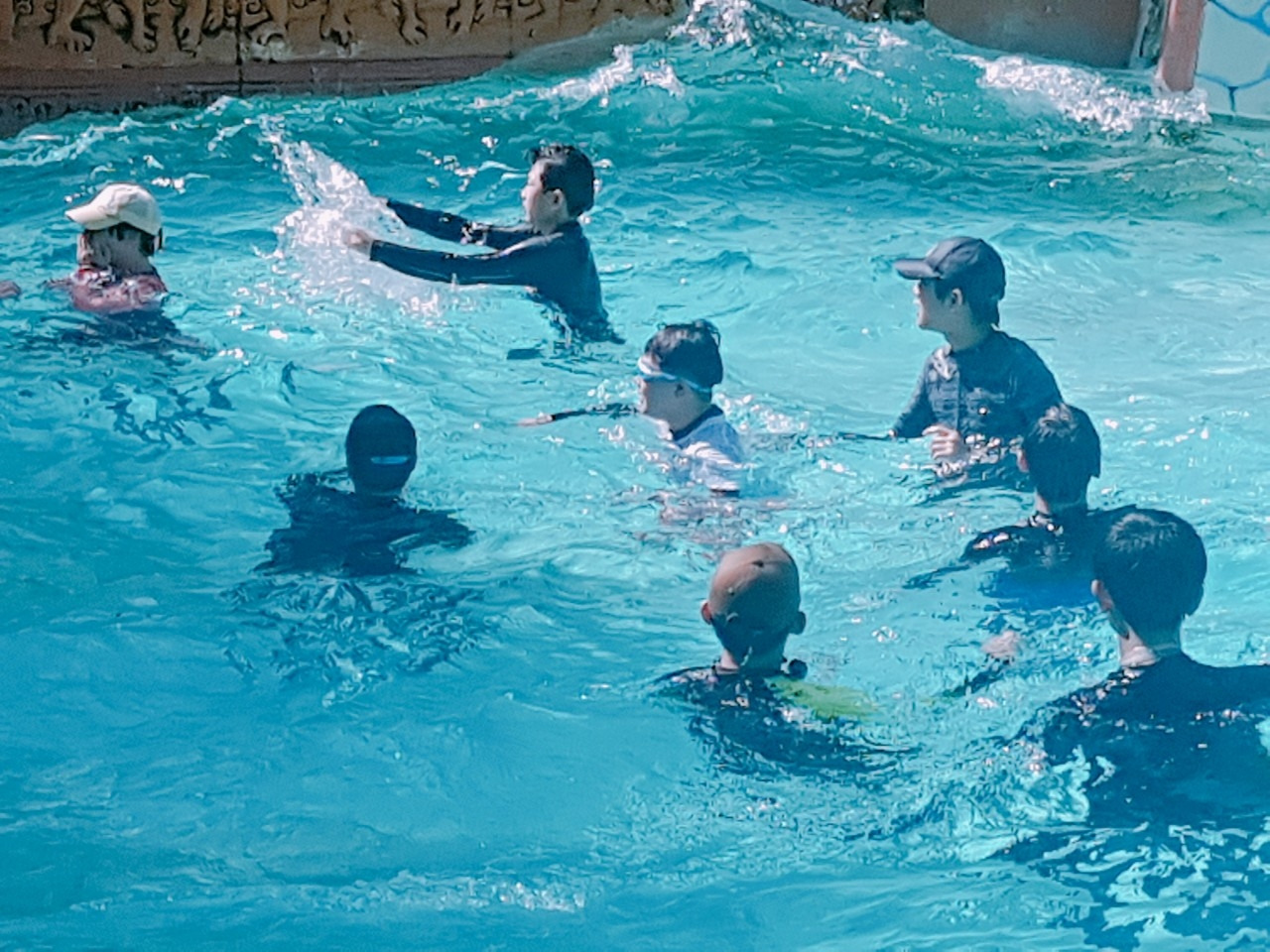 워터파크에서 신나게 물놀이를 하는 모습. 규율 속에서 공부를 하며 이렇게 한번씩 당근을 먹게 되었을 때, 어린 아이들은 웃음으로 꽃피워질 것이다. (출처:NIS 캠프 밴드)