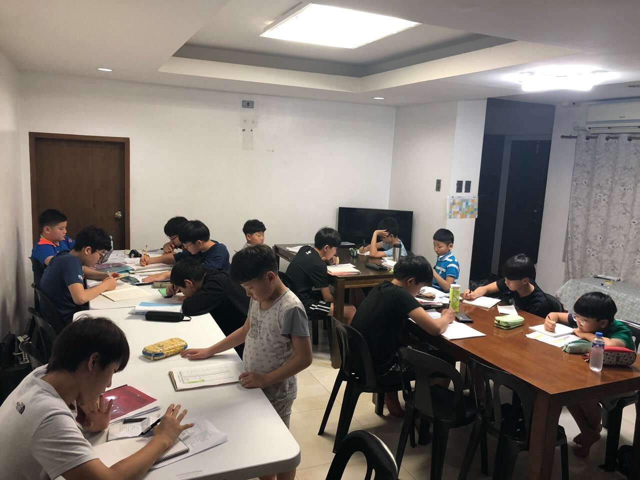 저녁 시간에는 이렇게 자율 학습 시간을 갖는다. 아들은 영어 단어 테스트를 준비하며, 자신이 생길 무렵에 수학 문제를 푼다고 했다(수학 문제집, 한 권 챙겨감).