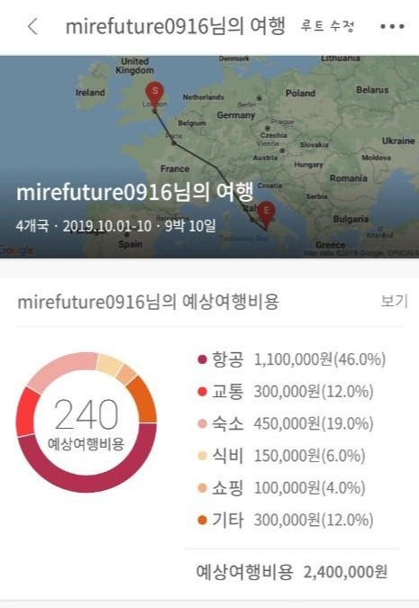 유럽의 각국을 여행하고 싶었던 아들은 시뮬레이션이라는 방법으로 일정을 짜보고 비용을 빼보는 기록을 남겨놓았다.