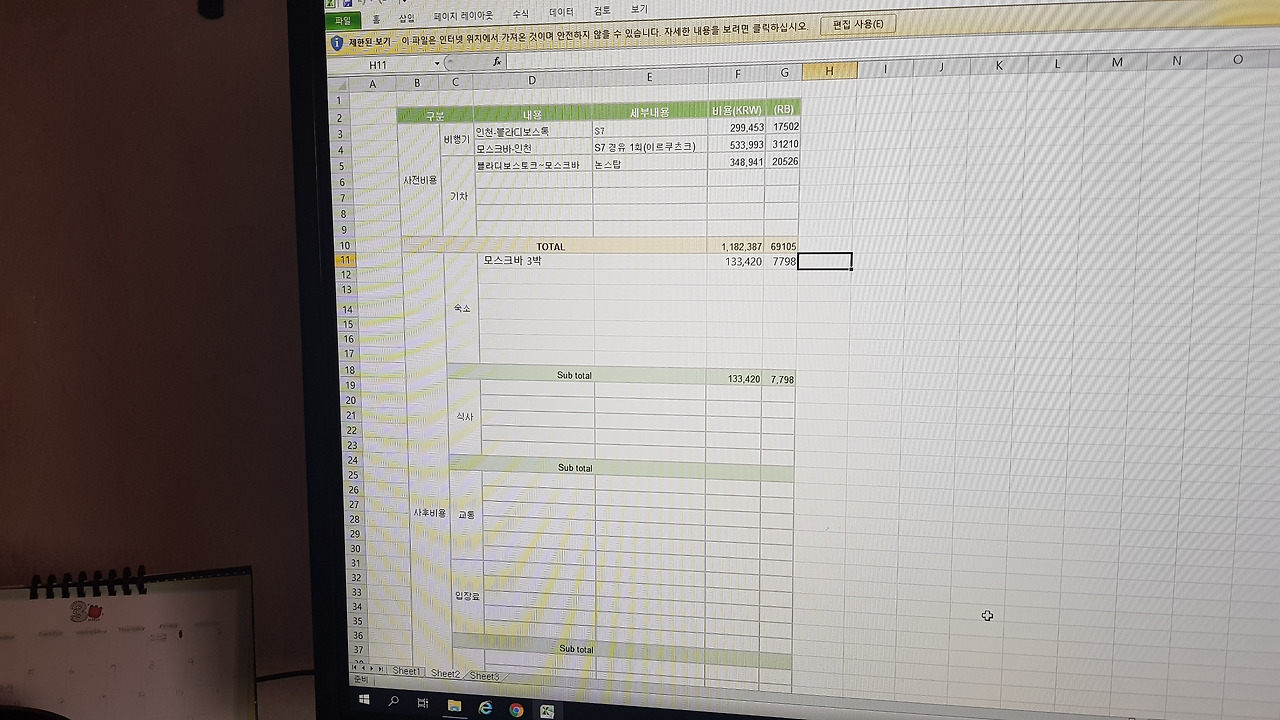 요즘 엑셀 작업으로 여행 기록과 일정들을 스스로 정리하고 있다. '모든 계획은 제가 할 터이니 엄마는 카드만 내 주세요.'란다.