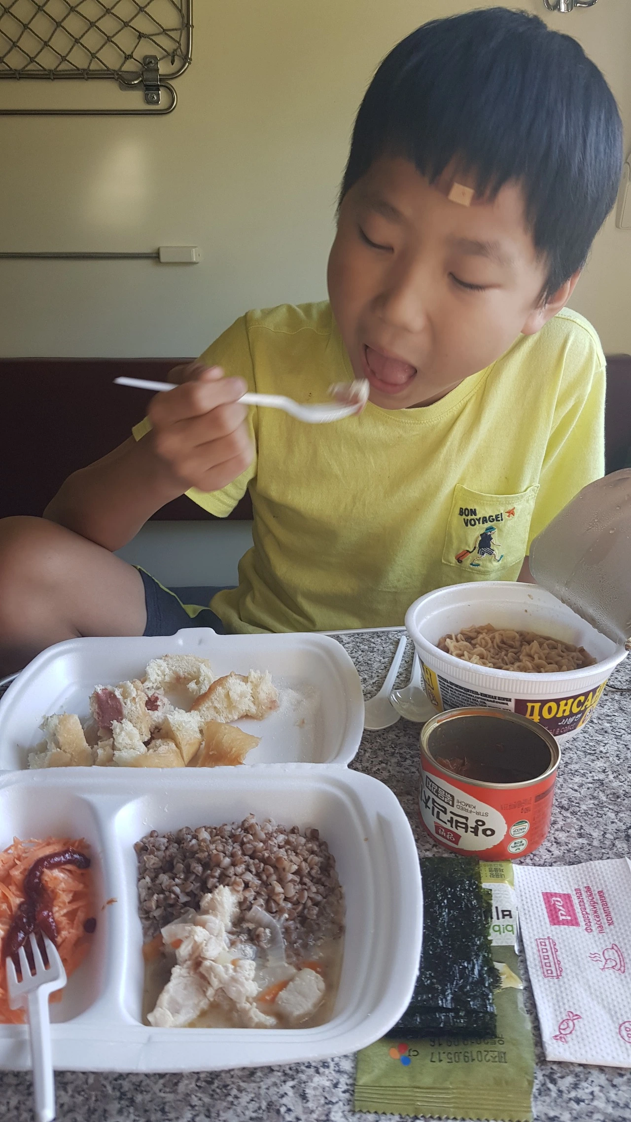 나름 까다롭다면 까다로운 아들의 식성을 탐색해 보기로 한 것. 좁은 횡단열차 안에서 먹거리를 대하는 모습은 어떠할까? 엄마인 나 역시도 궁금했다. 사실 걱정이라면 걱정이었다. 나야 이런 경험을 오랫동안 해온 터라 임기응변이 강하지만 아들의 11년 인생에서 러시아의 열차 안에서 음식 문화를 대하는 자세는 녹록치 않으리라는 것. 그래도 무사히 여행을 마친 것을 보면 아들도 부실하고 부족한 음식에 자신의 식성을 감추고 나름 열심히 잘 맞춰주었기 때문이었다고 생각한다.