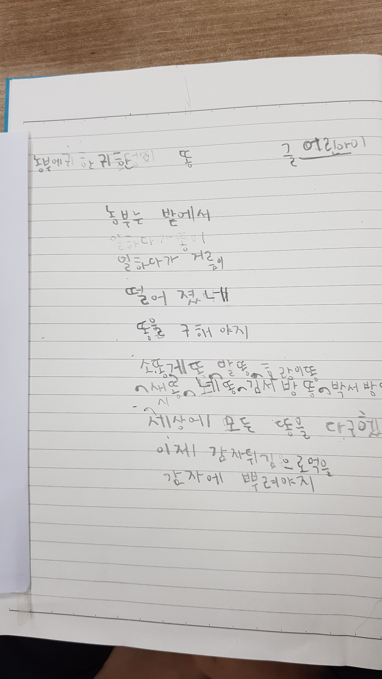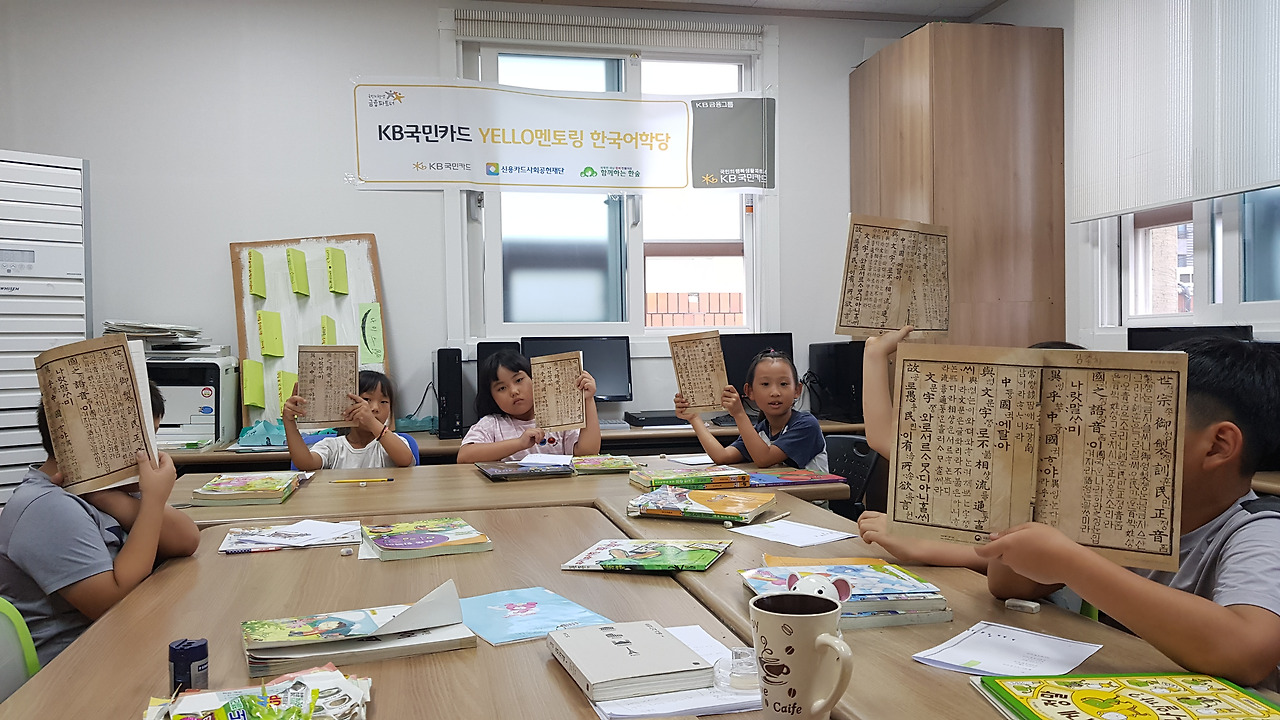 [KB국민카드 Yello멘토링 한국어학당]에서 선물로 받은 <나랏말ㅆ.미> 노트에 동시를 필사하고, 직접 창작한 시를 적는 노트로 활용할 계획이다. 오산시립지역아동센터.