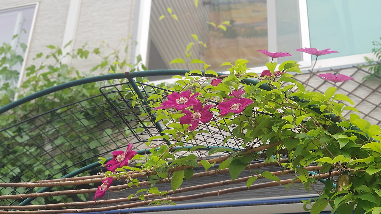 <6월 초, 뒤뜰의 아치에 뒤늦게 핀 클레마티스 녹턴, 5월과6월의 봄꽃>