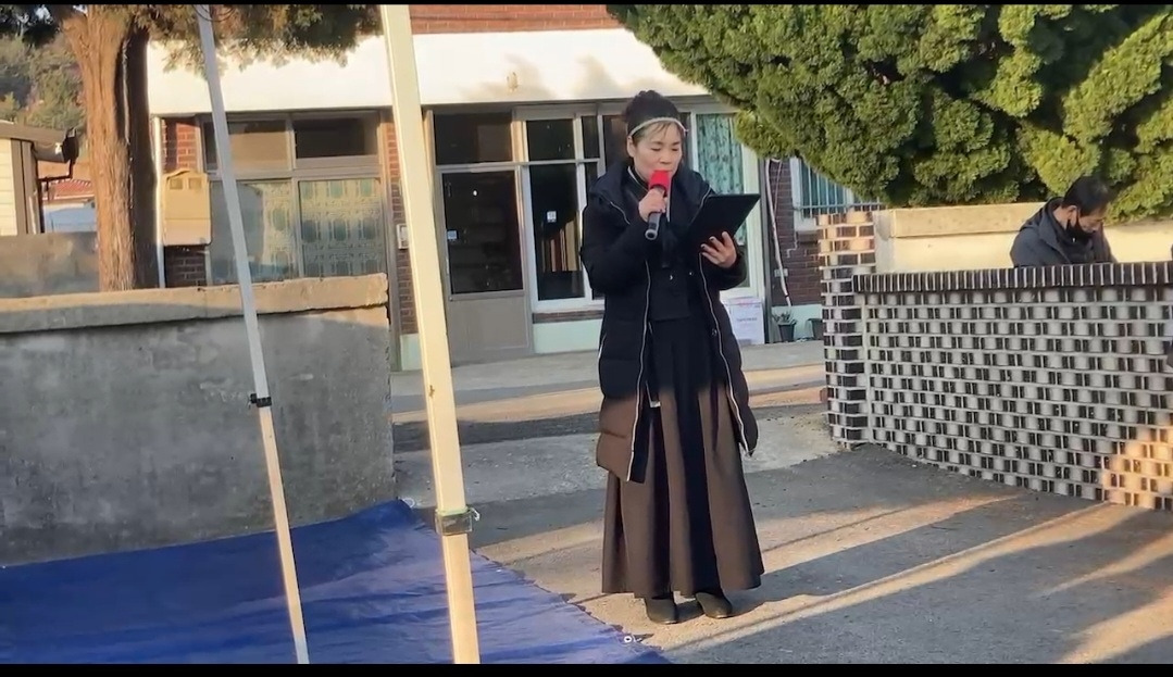 거금도 금산 신금마을, 부친의 장례 노제에서 조사를 읊으며.