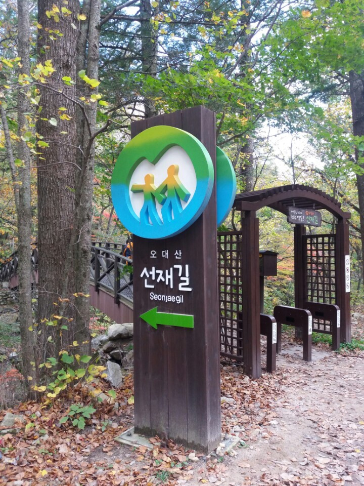 오대산 선재길은 그런 의미에서 아이와 대화 길로 간택된 최상의 장소가 아니었나 싶다. 집에서 200㎞가 채 되지 않는 곳은 숙박하지 않아도 되는 드라이브를 가장한 하루 여행으로 안성맞춤이기 때문이다. 차분하게 걷고 자연색을 감상하고 아이와 손을 잡는 시간이 충분할 것으로 예상했다. 선재길은 오대산의 상원사에서 월정사로 이어진 곳에 약 8㎞가 되는 산속 오솔길이다. 야트막한 산새에 길이 험간하지 않아 편하게 걷고 많이 생각하고 많이 이야기를 나눌 수 있는 공간이다. 오대산은 신라시대에 중국 오대산을 참배하고 문수보살을 친견한 자장 스님에 의해 개창된 문수보살의 성지이다. 이 문수보살은 지혜와 깨달음을 상징하는 불교의 대표적인 보살이라 하는데, 이러한 문수의 지혜를 시작으로 깨달음을 목적으로 향해하는 가는 것이 화엄경의 동자. 즉 선재인 것이라 한다. 이렇게 ‘선재’의 이름을 따 있는 길은 ‘이 길에서 참된 나를 발견하라.’는 간결한 메시지를 전하고 있다고 하는데.