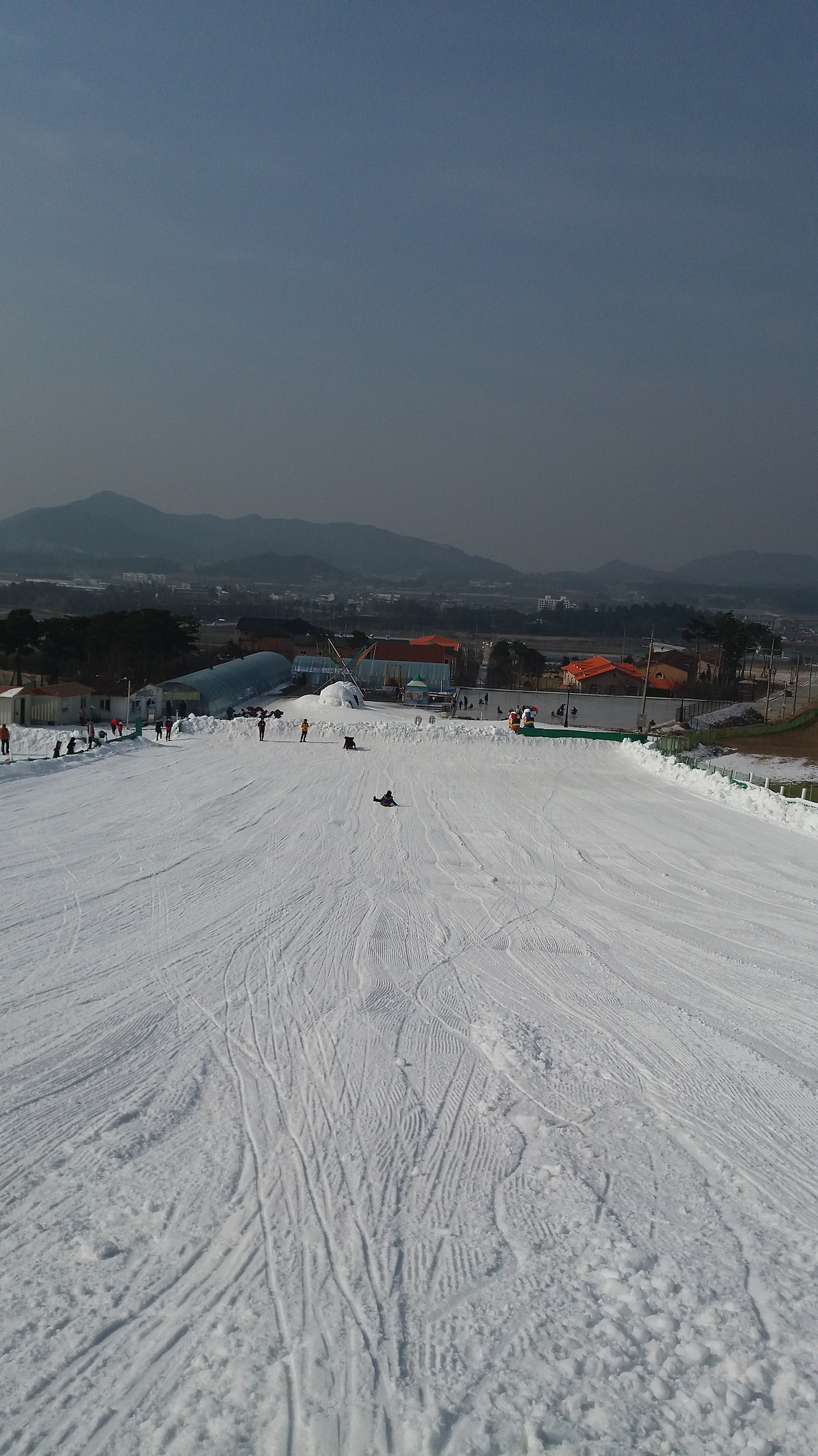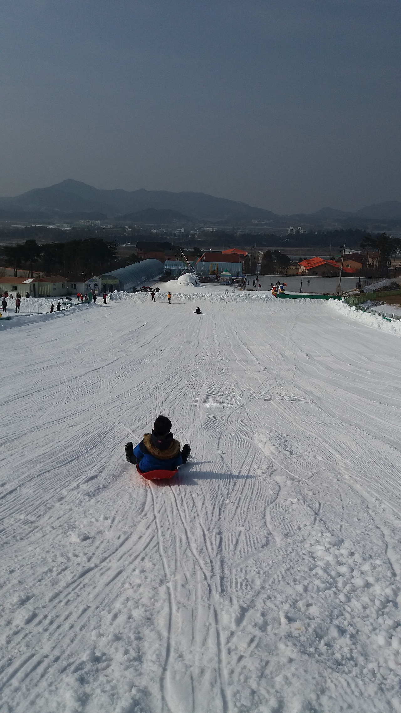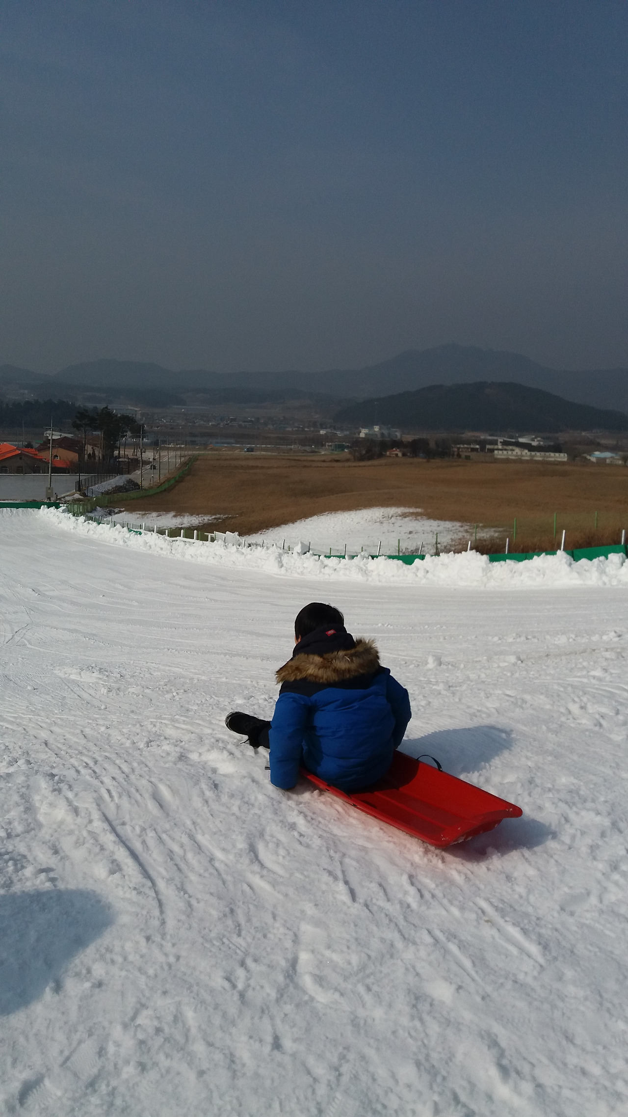 놀러 다닐 수 없었던 아이는 눈썰매장에서도