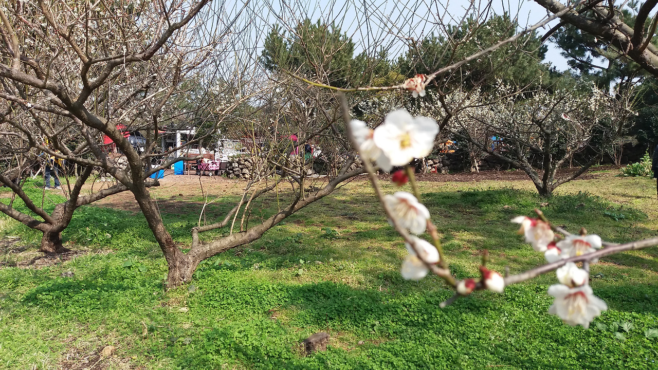 공원 바로 옆에 있는 매화꽃 사유지보다