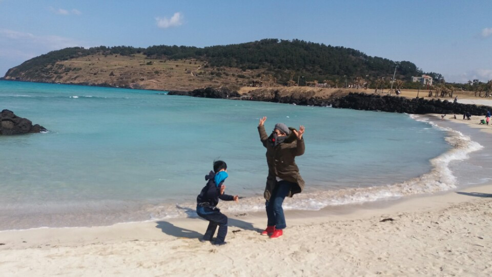 앞서도 밝혔지만, 주인의 이번 제주도 여행은 매화꽃과 유채꽃을 보기 위한 봄꽃맞이 여행이었다. 그러나 가장 먼저 일정을 잡았던 곳은 꽃밭이 아닌 바로 바닷가였다. 6년 전쯤, 그녀의 아이가 네 살 무렵이었을 때, 함께 거닐었던 함덕해수욕장을 먼저 찾은 것을 보면 귀소 본능이 분명 발동하는 듯했다. 많이 흥분이 되었을까? 노트는 주인의 손에서 잠시 멀어졌다. 모래와 파도를 벗 삼아 놀고 있는 아이의 모습을 그녀의 눈 속으로 채워 넣기 바빴기에. 이곳 외 칼바람에 지치지 않고 봄과 거친 파도가 인상적이었던 김녕해수욕장을 방문했던 것도 그녀의 아들과의 추억 보따리를 조금이나마 풀고 싶었던 터였다.