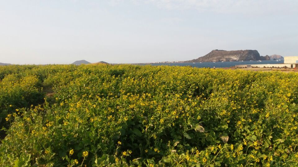 유채 밭 너머엔 하늘의 거울 바다를 품었네요