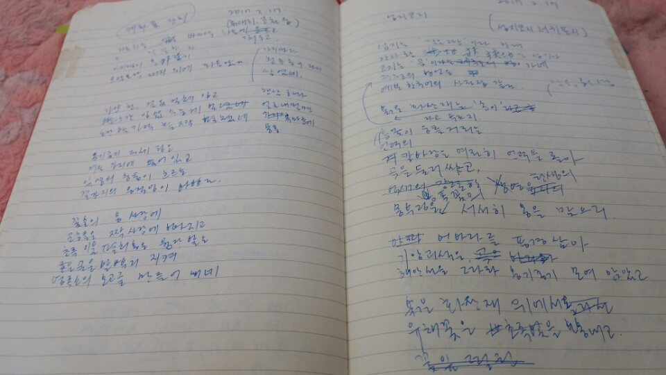 풍성한 꽃을 보고자 함보다 그녀는 그저 계절의 변화가 반가웠다고 말하고 싶었다. 어쩜 그렇게 말하고 싶었던 것들을 문장으로 만들어 노트에 채워 넣고 싶었는지 모른다. 올해는 작년 9월부터 써온 귀한 그녀의 노트. 그 노트 한 장 찢어 버리지 않는 것을 작은 목표로 삼았고, 남의 글을 옮기기도 하고, 주인의 글을 정리해주는 노트에서 작은 힘을 계속 받기로 해본다.