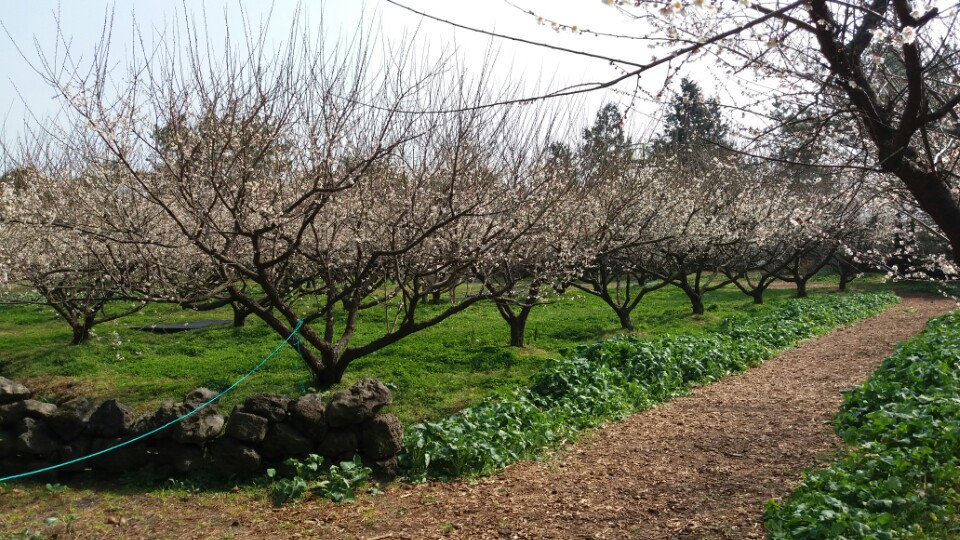 봄의 전령사 매화꽃. 서귀포시의 휴애리 매화꽃 소식을 접했다. 인터넷 서핑을 하면서 알게 된 지역이기도 하다. 겨울 막바지 여행 중에 봄꽃을 볼 수 있다는 것은 큰 행운이 아닐 수 없었다. 아직은 허전해 보이는 꽃잎의 영역이었지만, 몸속에 따스한 물이 흐르는 매화나무 가지에 듬성듬성 꽃잎이 붙여지고 있었다. 우리가 도착한 2월 17일부터 3월 1일까지 라니 보름 동안 더욱 풍성한 꽃잎 아래서 서성일 수 있으리라.