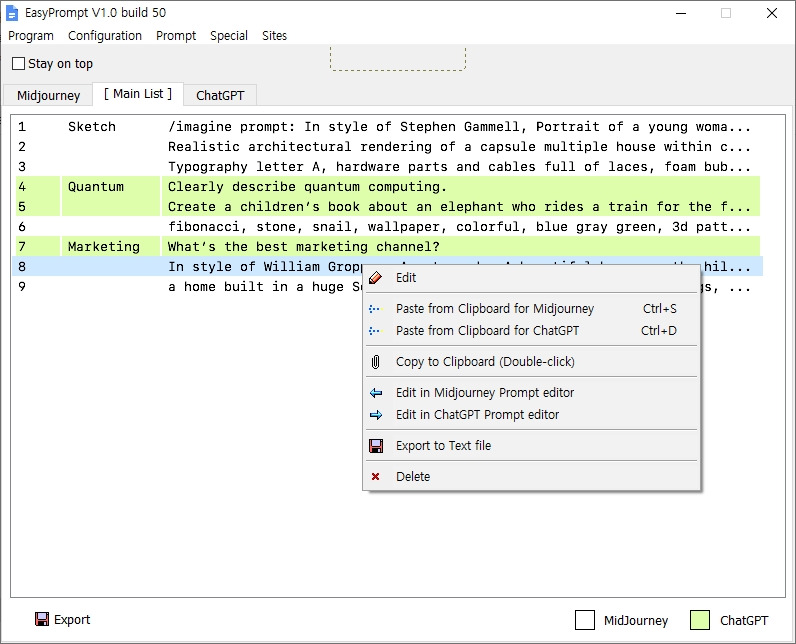 ChatGPT와 Midjourney의 프롬프트를 쉽게 작성하고 관리하기.