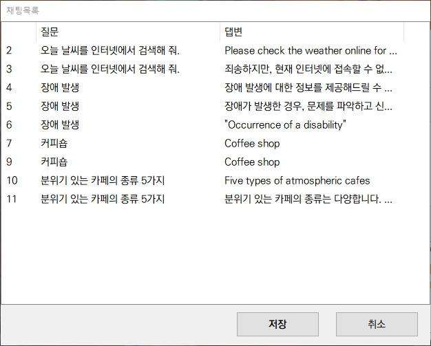 3. [프롬프트 기록하기] 옵션을 켜면 채팅(질문과 답변) 내용을 목록에 저장합니다. 메뉴에 있는 [채팅 목록]을 누르면 다음과 같은 목록이 나옵니다. 목록의 내용을 복사하거나 삭제할 수 있습니다.