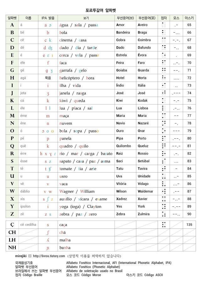 불과 7년전까지만 해도 포르투갈어의 알파벳은 공식적으로 23개였습니다. K, X, Y 이 세개의 문자는 외국어나 학술기호를 표시하기 위해 사용되었지만 공식적인 알파벳은 아니었지요. 그러다가 포르투갈어 사용국 공동체 (CPLP) 에서 2010년 즈음에 도입하기로 합의한 새 정서법으로 말미암아 비로소 정식 알파벳 문자로 인정되었습니다. 이제 공식적인 포르투갈어 알파벳 문자는 모두 26개입니다. 브라질에서는 이 법이 2016년 1월 부터 의무화되었습니다.
