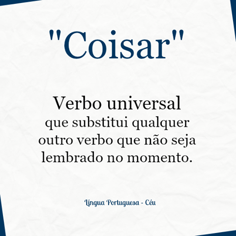 COISA + AR 형태로, 너무 많이 써서 사전에 등재될지도 모른다고 하네요. 온라인 사전에는 이미 올라갔습니다. 규칙동사로 동사 활용을 합니다. 동명사는 coisando, 분사는 coisado. 명사도 있어요. Coiso!