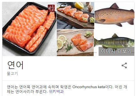 '연어'를 구글링 하면 '연어목 연어과에 속한다'는 salmon이 검색의 첫 페이지를 장식합니다.