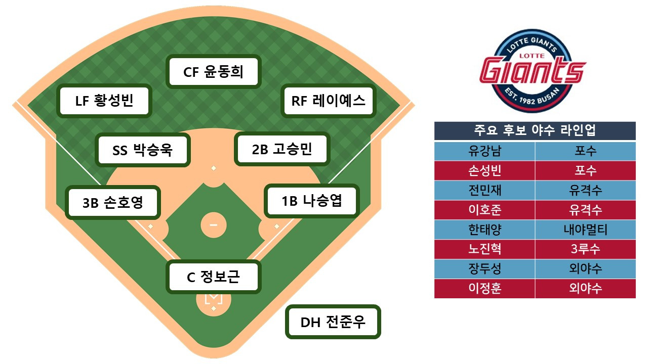 약간 불안한 점을 꼽자면 김민석을 보내며 외야 백업이 얇아졌다는 점이다. 황성빈은 아직까지는 외야의 4옵션이어야 하는 선수다. 여기에 '윤고나황손'이라는 어마어마한 히트상품을 만들어내긴 했으나, 실상 이 선수들도 여전히 스탭업이 필요한 부분이 많다는 점도 애써 찾을 수 있는 불안요소다. 젊은 선수들이 주전이라는 점은 엄청난 강점이지만 이건 꾸준함에 있어서는 아직 검증받아야 한다는 뜻이기도 하다.
